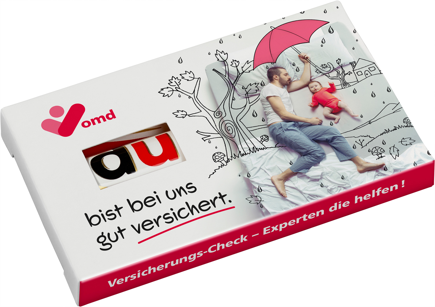 3er Pack personalisierbar mit Sichtfenster „du“ mit der Füllvariante alternativ 1 x Duplo klassisch und 1 x Duplo weiß und 1 x Kinder Riegel in Originalverpackung. Haltbarkeit: ca. 3 Monate. Inkl. 1-4c Druck.