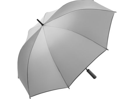 Trendiger Automatik-Gästeschirm für zwei Personen mit modisch reflektierender Außenbeschichtung auf zwei Segmenten. Komfortable Automatik-Funktion zum schnellen Öffnen, hochwertiges Windproof-PLUS-System für eine maximale Gestell-Flexibilität bei stärkeren Windböen, flexible Fiberglasschienen, zwei Segmente und modische Paspelierung mit farblich zum Bezug passender und modisch reflektierender Beschichtung, gerader Soft-Feel-Griff mit integrierter Auslösetaste und Werbeanbringungsmöglichkeit, höherer Korrosionsschutz durch schwarze Galvanisierung des Stahlstocks. Auch als Taschenschirm (Art. 5477) erhältlich.