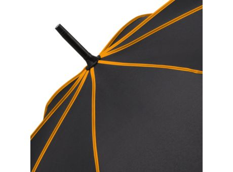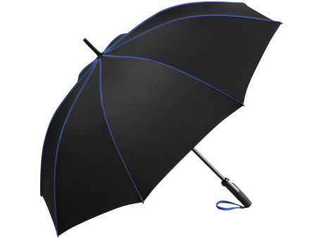 Schicker Automatik-Stockschirm in mittlerer Größe mit farbigen Highlights. Komfortable Automatik-Funktion zum schnellen Öffnen, hochwertiges Windproof-PLUS-System für eine maximale Gestell-Flexibilität bei stärkeren Windböen, flexible Fiberglasschienen, auffällige Verzierung des Bezugs durch farbige Segmentnahtpaspeln, matt/glänzend abgesetzter Soft-Touch-Griff mit integrierter Auslösetaste und Werbeanbringungsmöglichkeit, farbige Griffschlaufe, höherer Korrosionsschutz durch schwarze Galvanisierung des Stahlstocks. Auch als Taschenschirm (Art. 5639) erhältlich.