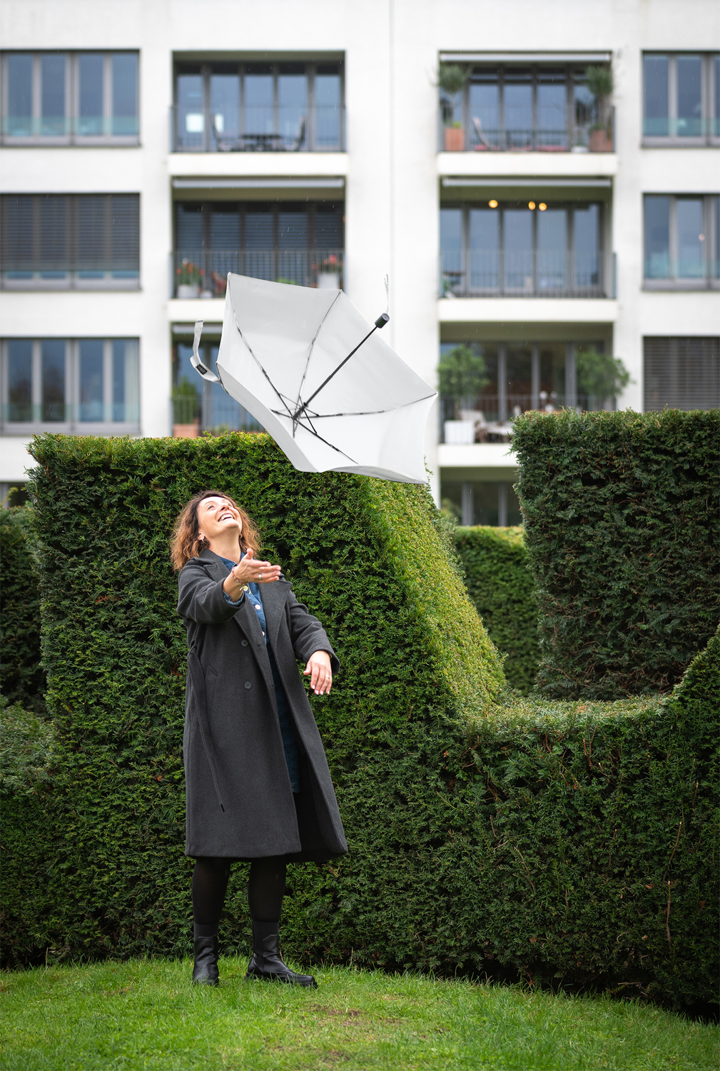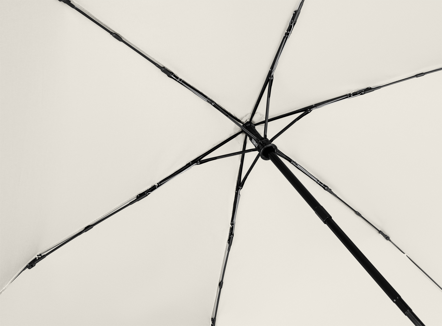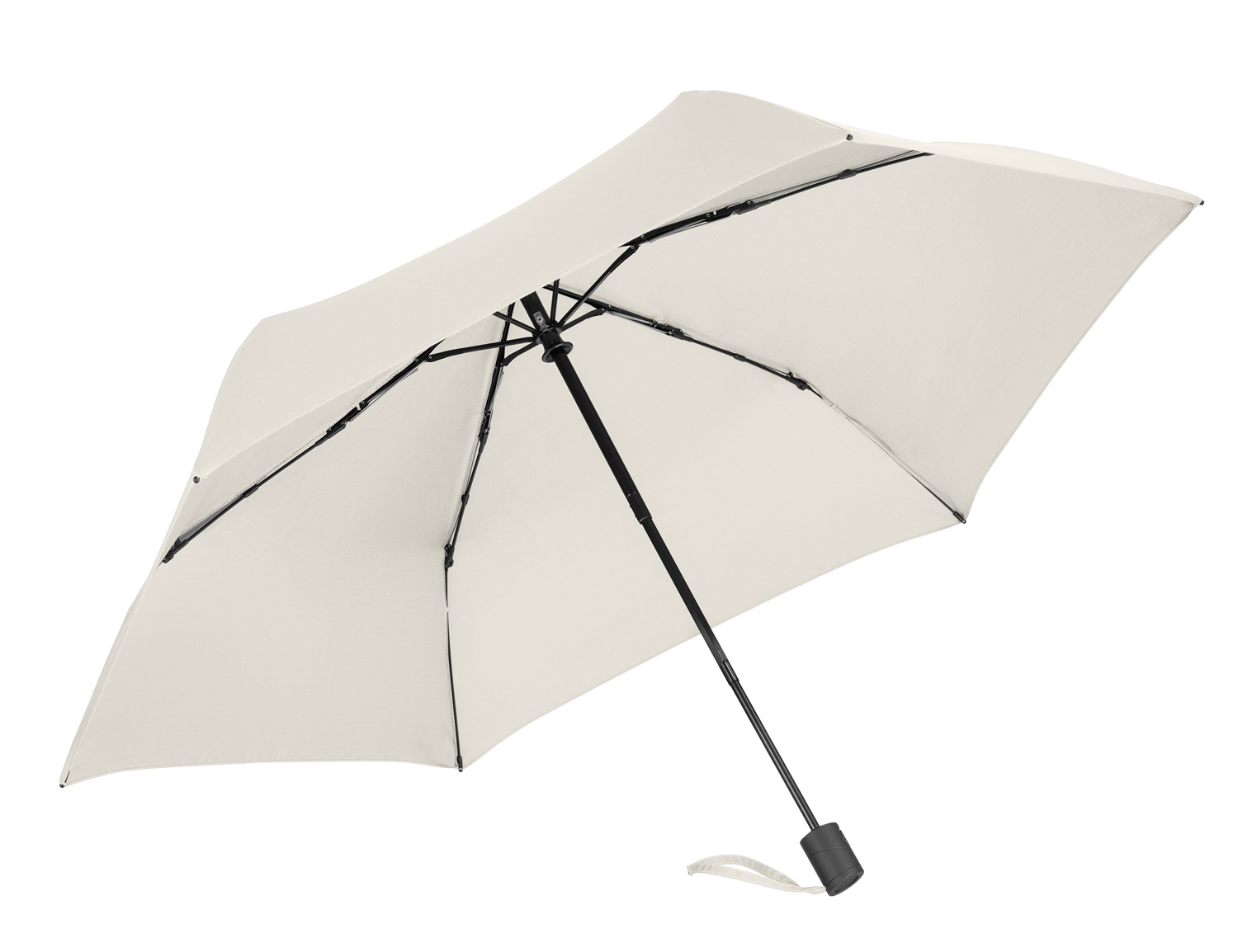 Filigraner Doppelautomatik-Taschenschirm in superleichter Ausführung. Komfortable Automatik-Funktion zum schnellen Öffnen und Schließen, hochwertiges Windproof-PLUS-System für eine maximale Gestell-Flexibilität bei stärkeren Windböen, schwarzer Aluminiumstock, wassersparend gefärbtes Polyester-Pongee waterSAVE® Bezugsmaterial aus recycelten Kunststoffen, mit waterSAVE® Label auf dem Schließband, matt-schwarzer Kunststoff-Softfeel-Griff mit Auslösetaste und Werbeanbringungsmöglichkeit, handtaschentauglich durch superleichtes Gewicht und kompakte Größe
