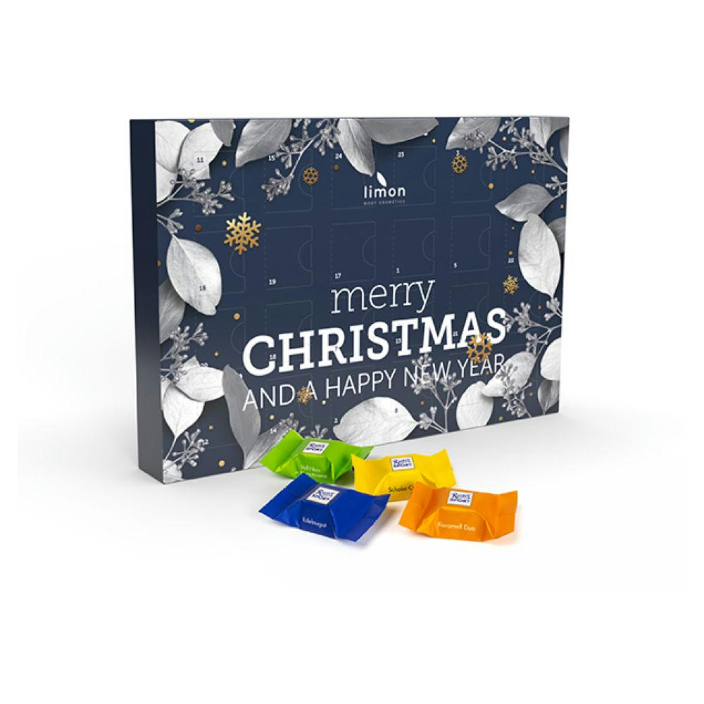 Ein hochwertiger Adventskalender mit großer Fläche für eine individuelle Werbebotschaft. Für den Adventskalender stehen verschiedene Füllvarianten zur Verfügung. Aufgrund seiner Form und einer praktischen Wandaufhängung lässt sich dieser auf dem Tisch aufstellen oder aufhängen. Wie alle unsere Adventskalender ist auch dieser komplett aus FSC®-zertifiziertem Papier produziert. Variante: Adventskalender Multi | Milka Favourites | 4c Euroskala
