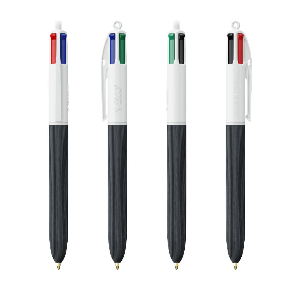 Unser ikonischer BIC® 4 Colours Kugelschreiber jetzt mit Holzmaserungseffekt. Lassen Sie sich von der spektakulären Holzoptik beeindrucken! Unser legendärer BIC® 4 Colors® wird nachhaltiger, jetzt mit 13 % weniger Kunststoff im oberen Bereich! Bedenken Sie, dass Sie Ihre Bestellung zwischen Juni 2023 und Juni 2024 möglicherweise mit dem Standardclip oder dem neuen Clip erhalten, der weniger Kunststoff enthält.