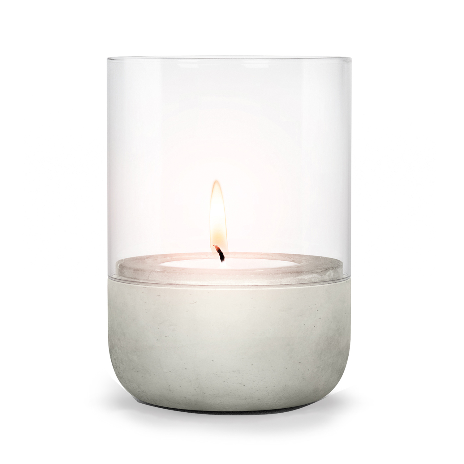 Material: Beton, Glas klar. Farbe: Beton. Maße:Ø 15 cm, Höhe 22,5 cm.