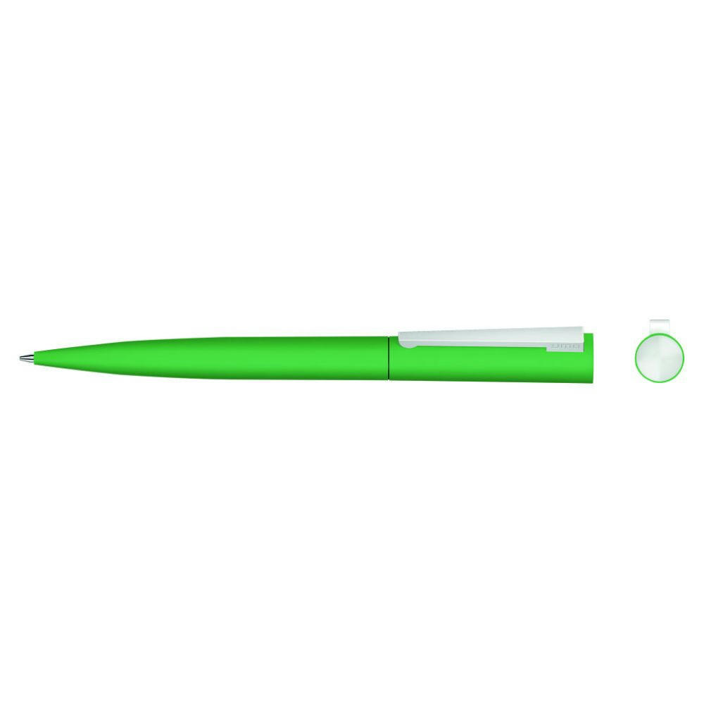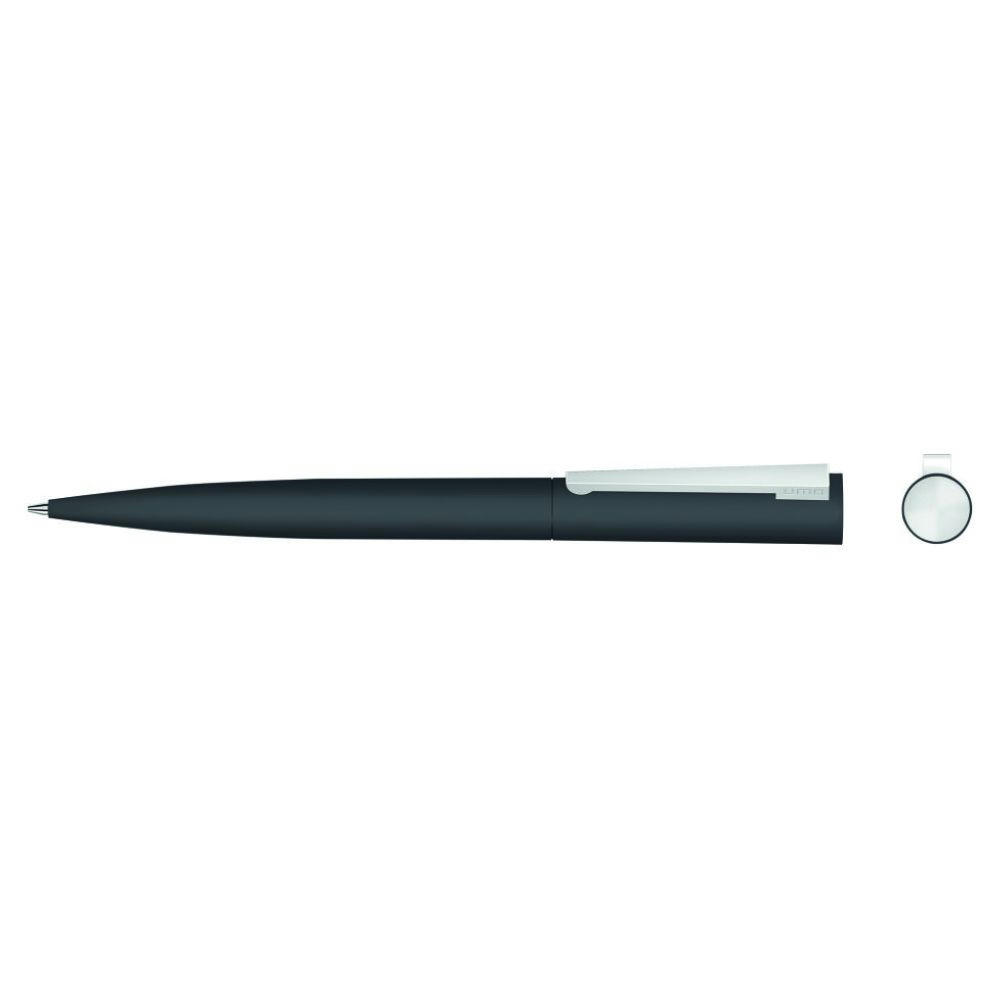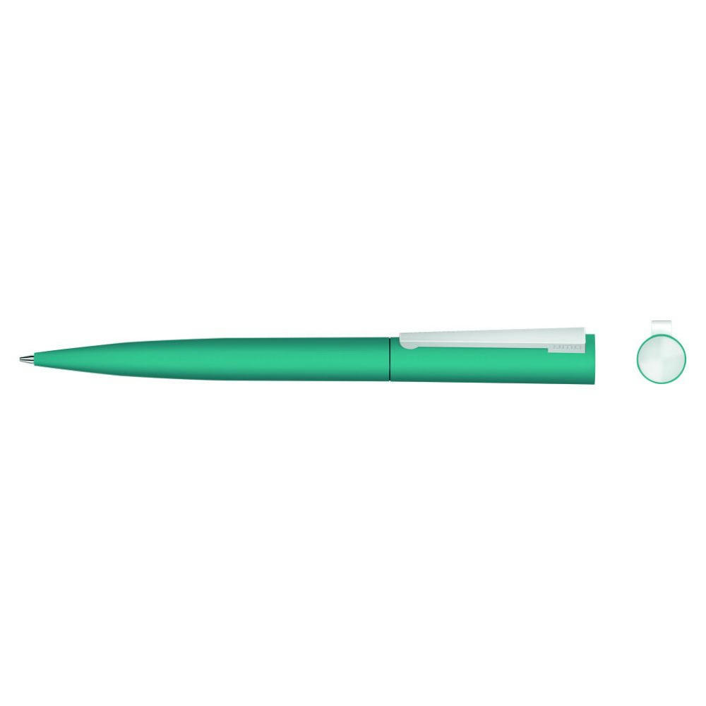 Metall-Drehkugelschreiber mit Softtouch-Gehäuse, gefederter Metallclip und Stopfen matt verchromt.