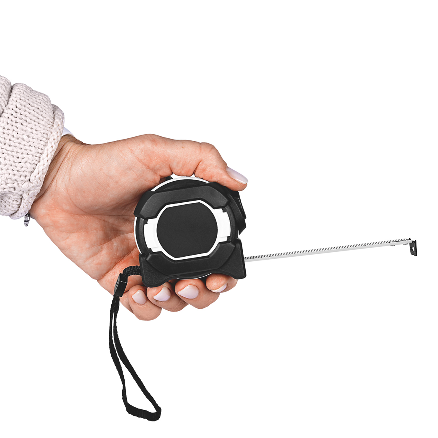 Stabiles und robustes Qualitäts-Bandmaß aus schlagfestem 2-Komponenten-Gehäuse. Durch die Aussparung im Haken kann das Stahlband in einen Nagel oder eine Schraube eingehängt werden. Knickfestigkeit: 1,60 m. Skalierung: cm, einseitig. Genauigkeitsklasse: EG-Klasse II. Ausstattung: dynamischer Bandrücklauf, beweglicher Bandanfangshaken, Gürtelclip und Handschlaufe.Verpackung: schwarze Geschenkverpackung.