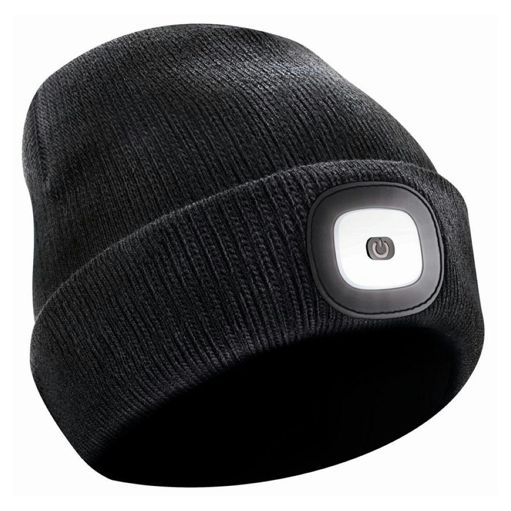 Mit dieser Beanie-Strickmütze sind Sie immer sicher unterwegs! Per USB wiederaufladbarer LED-Klemmspot (300 mAh), der je nach Witterung in die Mütze oder das Stirnband integriert werden kann.
