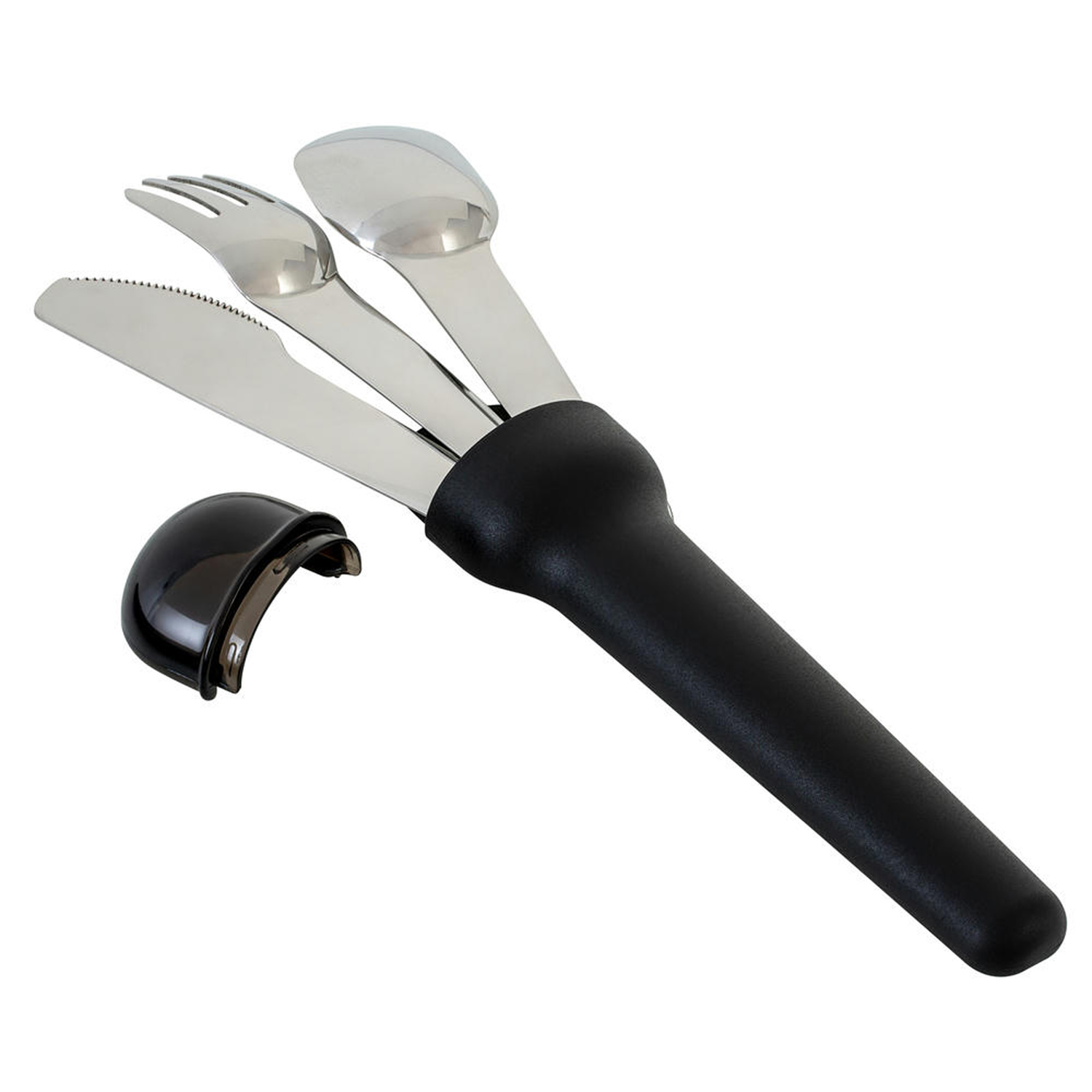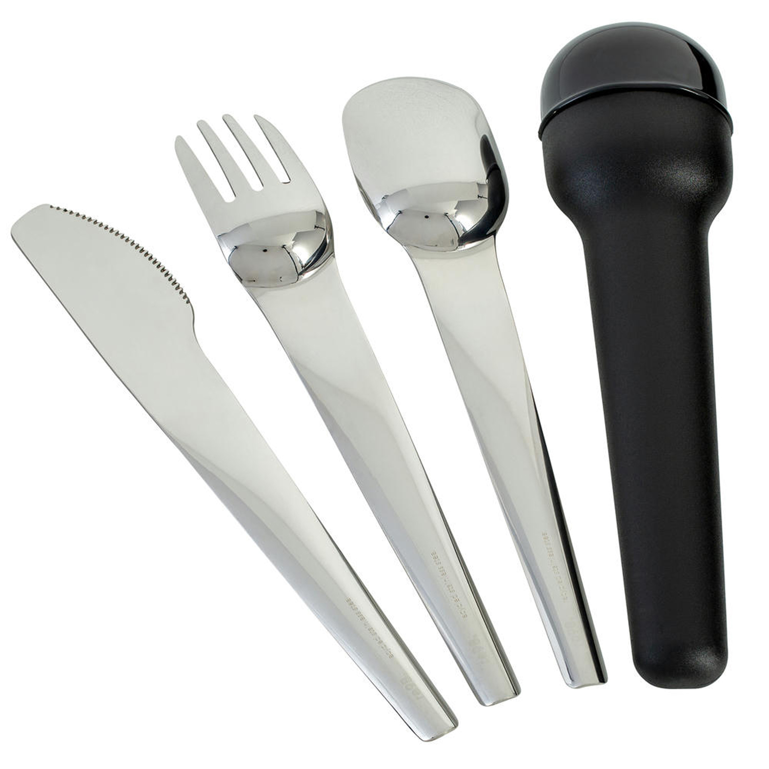 Clever übereinander gestapelt, liegen Löffel, Gabel und Messer in einer sicher verschließbaren Kunststoffbox. Die Form des Besteckkopfs und eine minimale Wölbung in den Griffen geben die Passform vor und ermöglichen eine intuitive Stapelung. Das Besteck ist aus hochglanzpoliertem und extrem robustem Edelstahl 304 gefertigt. Ob Obst oder Fleisch, auf Schärfe muss man bei diesem Messer nicht verzichten. Das Messer hat einen Sägeschliff und ist somit ebenso scharf wie handelsübliche Besteckmesser für den Haushalt. Auch die Gabel mit vier Zinken ist zum Aufpicken und Aufnehmen von Speisen geeignet. Alle drei Besteckteile liegen angenehm in der Hand und überzeugen mit einer Größe, die genau zwischen Hauptgang-Besteck und Dessert-Besteck liegt. So eignet sich das Set für jede Speise.