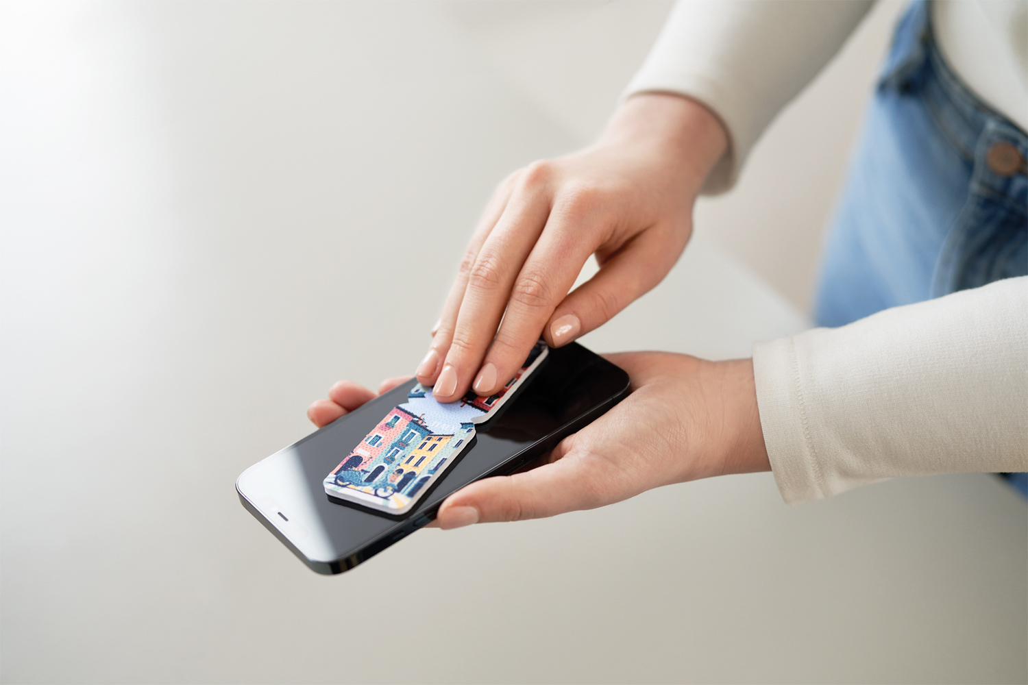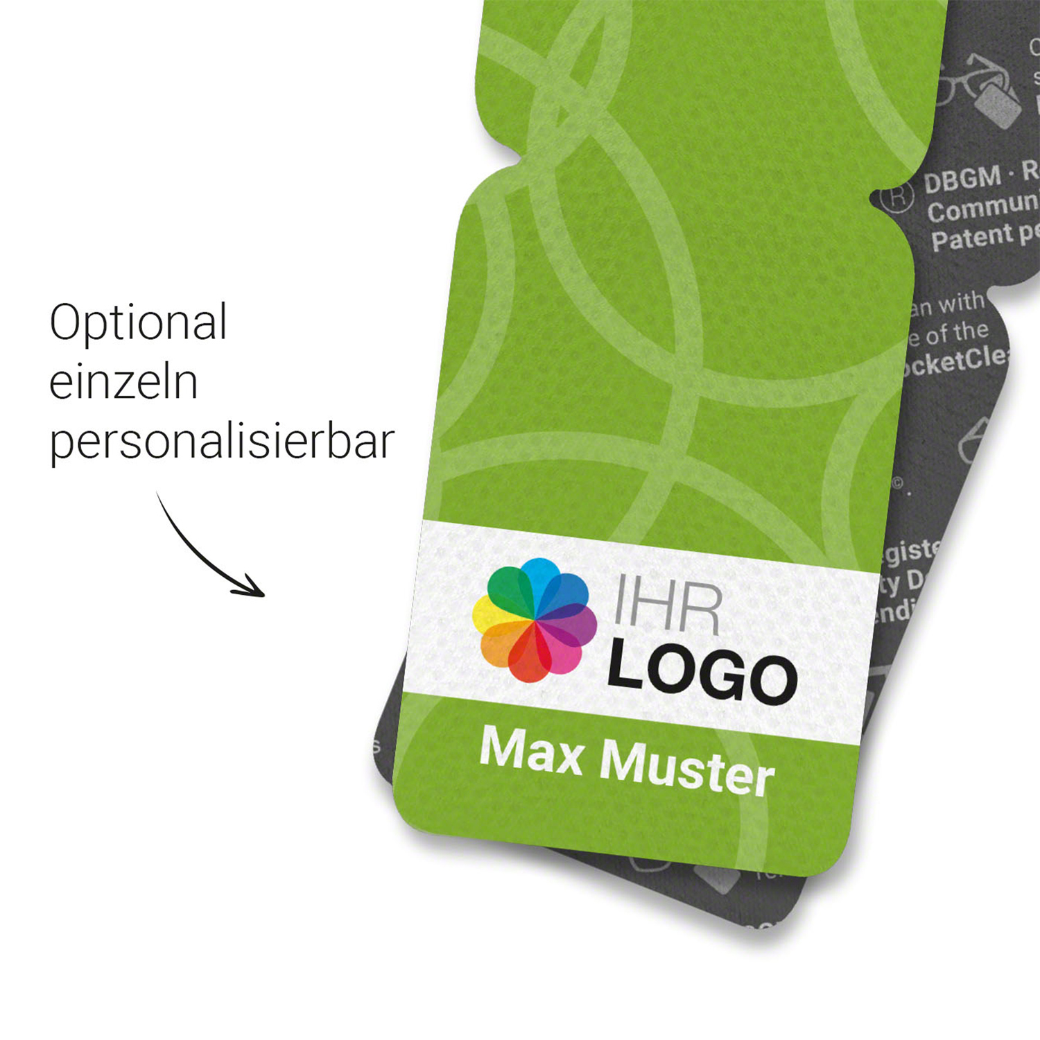 Die verarbeitete P-9000® Microfaser entfernt Fingerabdrücke und Schlieren äußerst effektiv. Feine Grip-Dots auf der Außenseite verhindern das Verrutschen der Finger. Der PocketCleaner® wird im kompakten Case inkl. individuellem, mehrfarbigen HD-Werbeaufdruck geliefert. Made in Germany. Preis inkl. 4/0 Druck sowie inkl. Druckvorlauf- und Versandkosten an eine Adresse in Deutschland auf dem Festland.