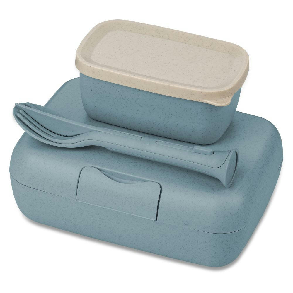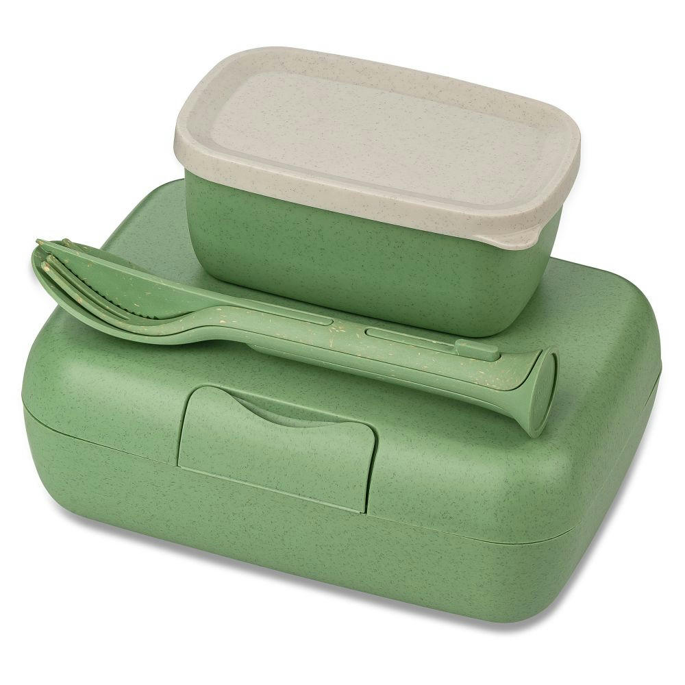 Lunchbox-Set CANDY READY hat alles, was man für ein gesundes Mittagessen unterwegs braucht. In der großen Box CANDY L und der auslaufsicheren Dose CANDY S sind Salate und Dressing, Gemüsesticks und Dip, Sandwiches und Obst sauber voneinander getrennt und das Essen bleibt appetitlich bis zum Verzehr. Besteckset KLIKK POCKET findet in der großen Box ebenfalls Platz und rundet das Lunchbox-Set perfekt ab.