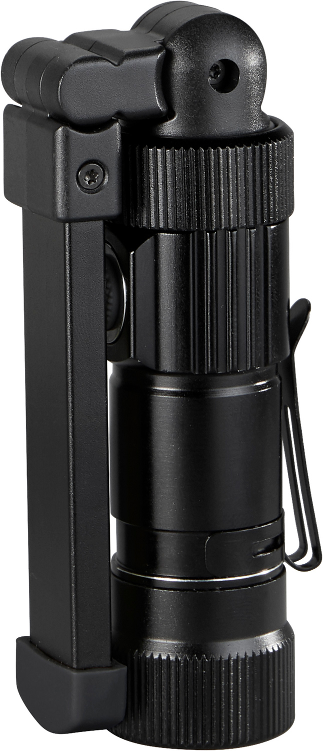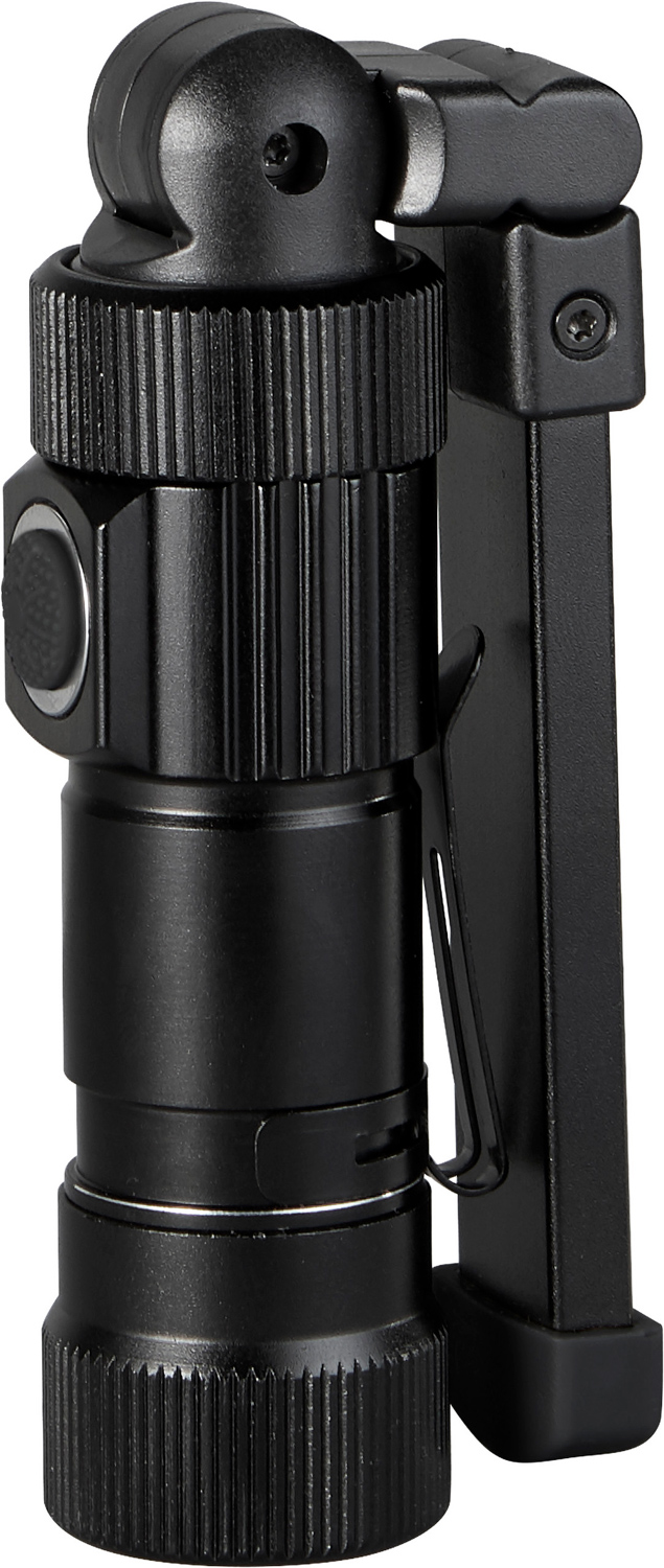 Taschenlampe aus Aluminium mit überraschenden Fähigkeiten: schwenkbarer Leuchtenkopf, per USB aufladbare Batterie (500 mAh), Magnet, Clip, USB-Stecker unter der hinteren Abdeckung. 5 durchschaltbare Lichtmodi: hell (300 Lumen) / halbe Leuchtstärke (150 Lumen) / Punktlicht / rot / rot blinkend.