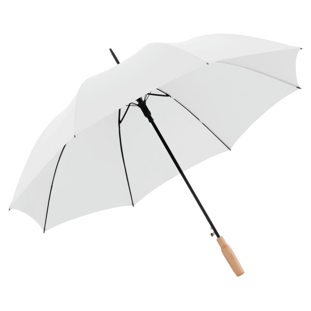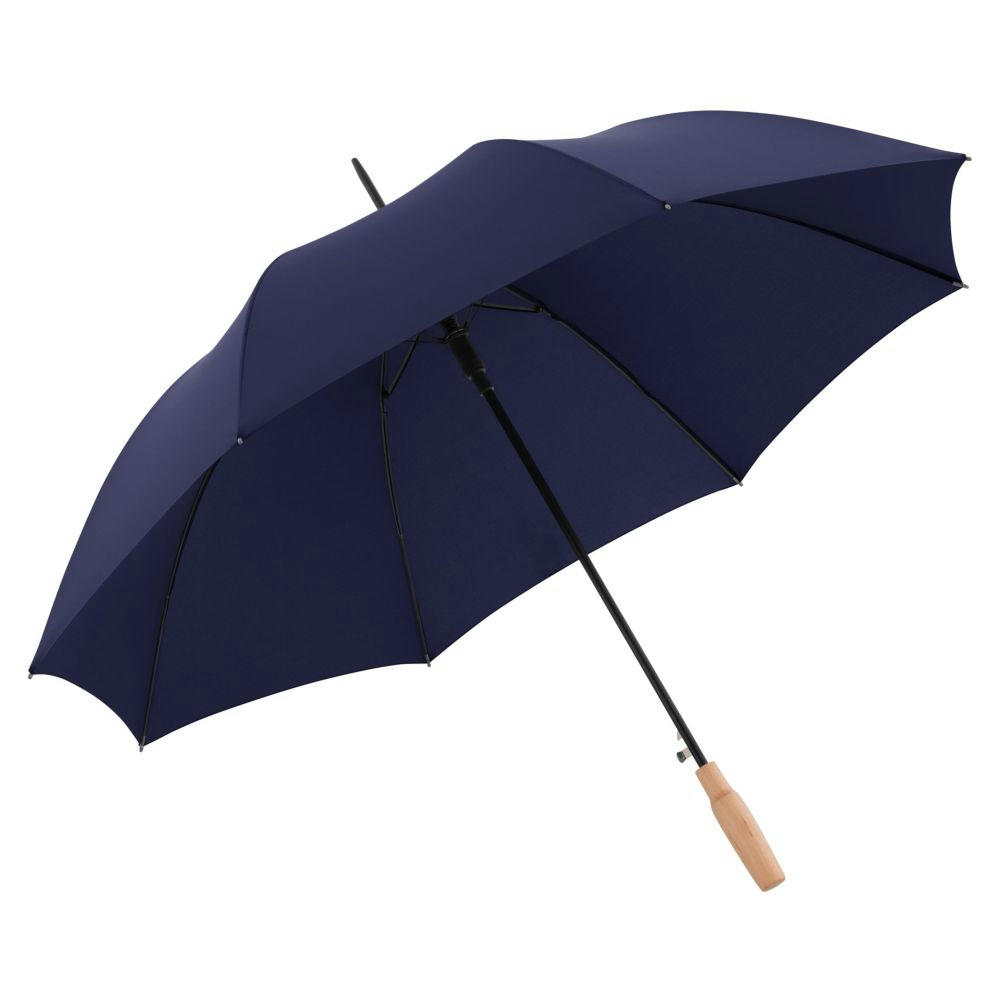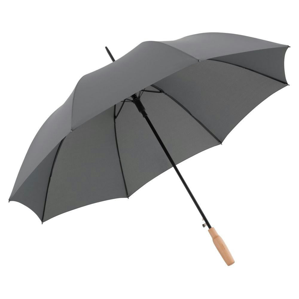 Nachhaltiger PFC-freier Stockschirm mit Automatikfunktion, rPET-Bespannung und einem zertifiziertem Holzgriff aus nachhaltiger Forstwirtschaft, zu attraktiven Konditionen.
