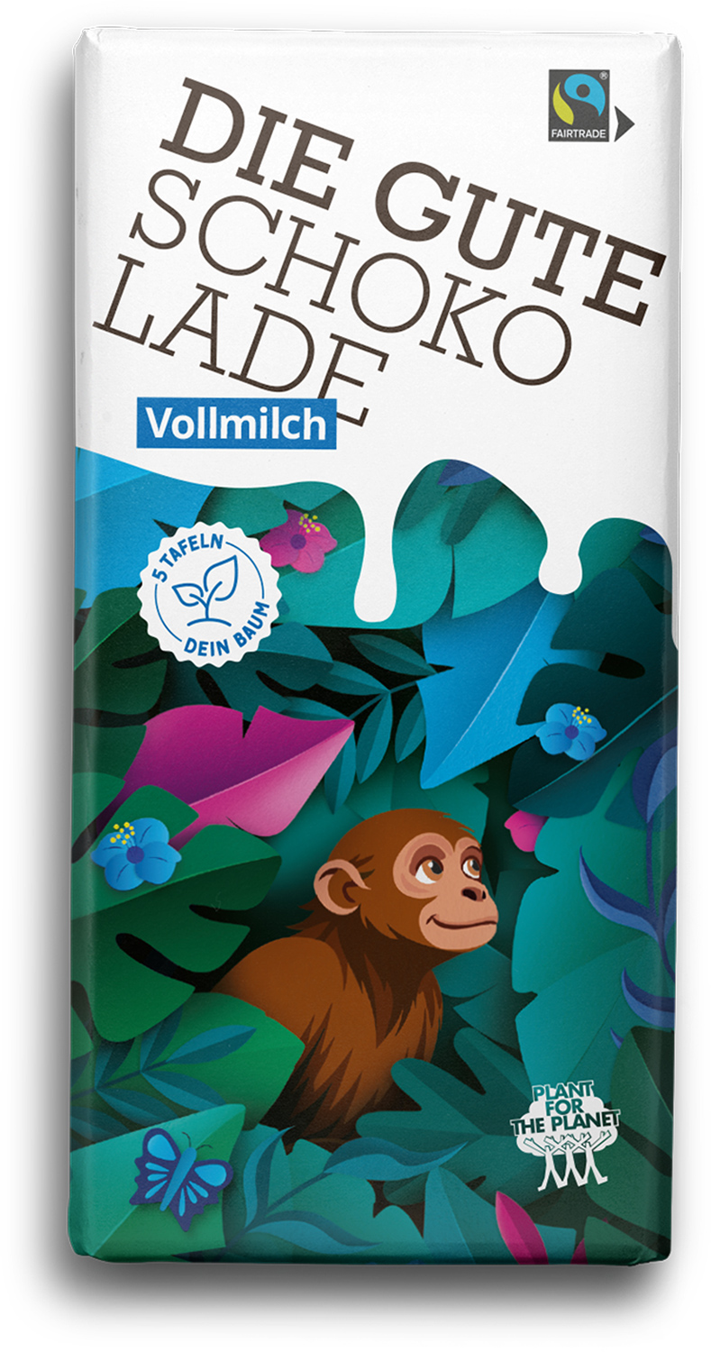 Stück für Stück Gutes tun mit der Guten Schokolade von Plant-for-the-Planet. Ein Teil der Erlöse kommt der Arbeit der Kinder- und Jugendinitiative Plant-for-the-Planet zu Gute, die pro 5 verkaufter Tafeln einen Baum pflanzt. Leckere Schweizer Vollmilch Schokolade mit individuellem Werbedruck auf Kartonschuber. Auf Wunsch mit digitaler Baumspendenurkunde. Variante : Die Gute Schokolade | 100 g | Vollmilch | Kartonage | 4c Euroskala