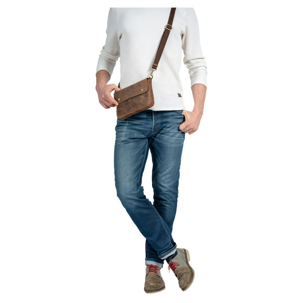 Abnehmbar, mit Druckknöpfen, mit innenliegendem kurzem Riemen mit Karabinern, einem zusätzlichen langen abnehm- und verstellbarem Riemen, innen: 1 RV-Fach