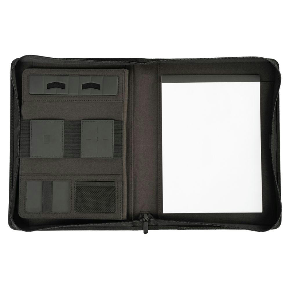 Mit RV,mit A4 Block, Handyhalterung, Ladestation für eigene Powerbank und kabelloses Laden des Telefons, Laptopfach, Stiftschlaufe, Netzfach, Steckfach mit Gummi