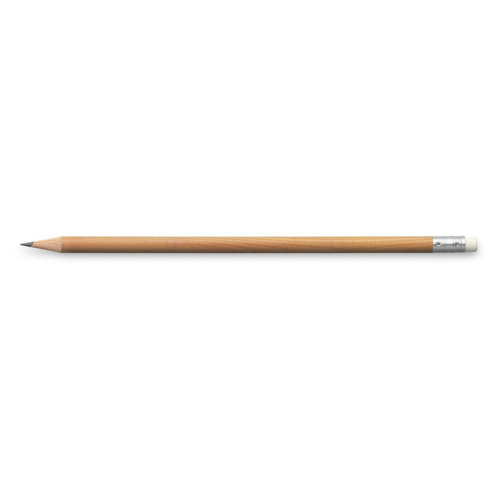 Bleistift aus naturfarbenem Holz mit Klarlack überzogen. Offenes Stiftende, rund, gespitzt. Härtegrad: HB, bruchfeste Mine durch Spezialverleimung. Preis inkl. 1c-Druck.