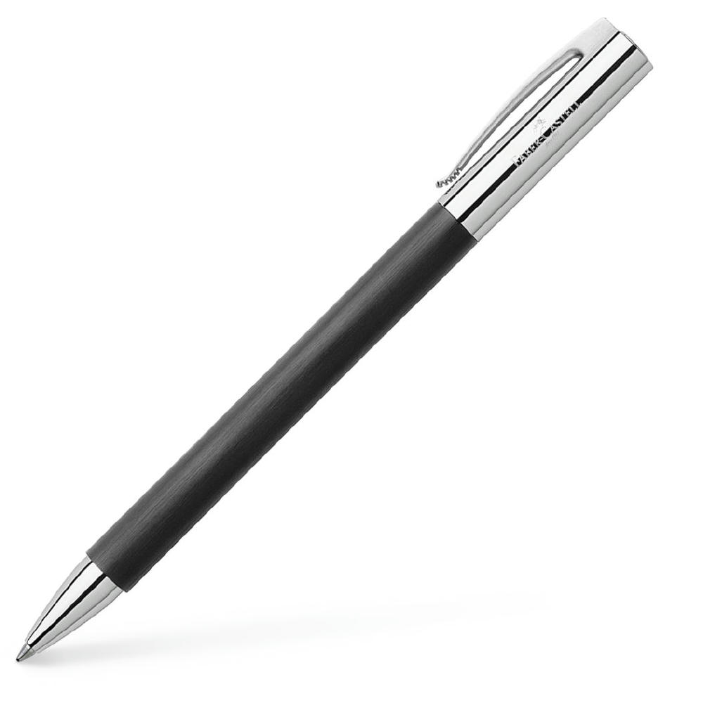 Mit austauschbarer Großraummine, schwarz/B.Schwarzer Schaft aus gebürstetem Edelharz, hochglänzend verchromte Metallteile. Eingelegt in die weiße Kartonage mit Lederbändchen. Preise ab 25 St. inkl. Lasergravur auf der Kappe