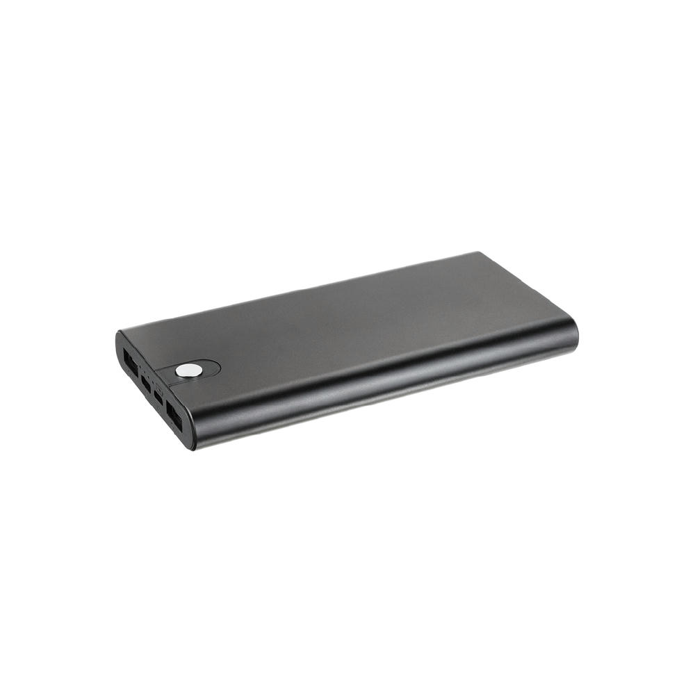 Markante Powerbank mit 10.000 mAh Hochleistungsakku, solidem Aluminium-Gehäuse, doppeltem USB-Output, Typ C In- und Output, sowie Ladestandsanzeige. Der dominant gestaltete Power-Button integriert in das schwarze oder silberne Uni-Body-Case macht Flat 10 zu einem eleganten Werbegeschenk für anspruchsvolle Marken. Individuell mit Ihrem Logo als Lasergravur oder brillantem Druck.