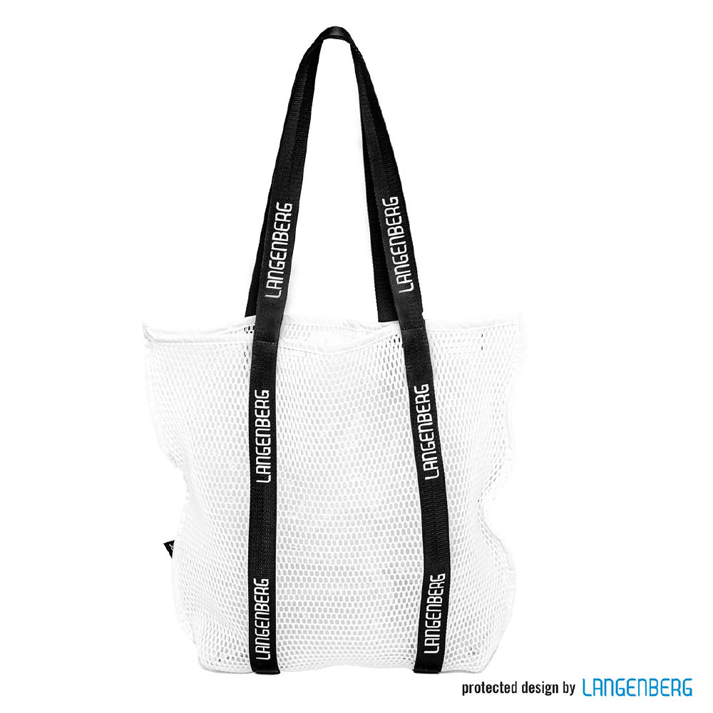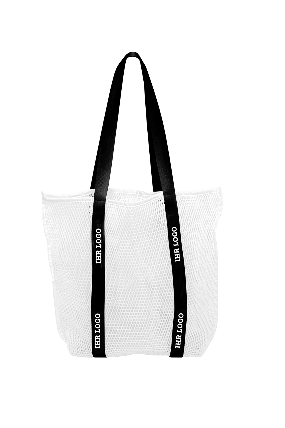 Offenes Hauptfach, gewebte Tragegriffe in schwarz.