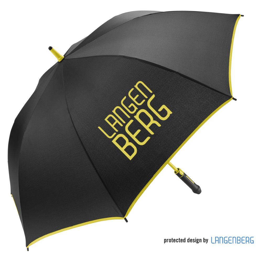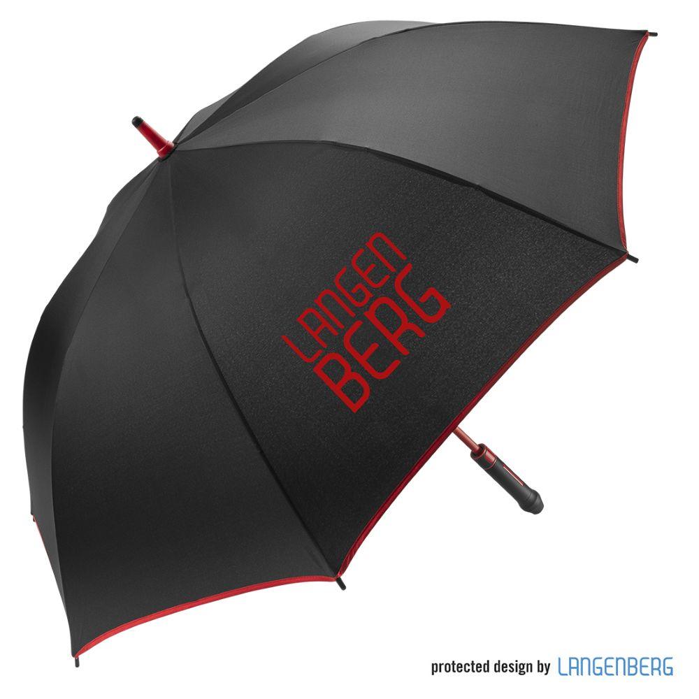 Der Regenschirm verfügt über eine Bespannung aus 190T Pongee mit farblicher Bordüre und einem Durchmesser von ca. 120 cm. Im geschlossenen Zustand ist er etwa 95 cm lang und lässt sich per Automatik öffnen. Der Schirm besteht aus 8 Segmenten und ist mit 68 cm langen Fiberglasspeichen sowie einem 14 mm Fiberglas-Schaft in der Farbe der Bespannung ausgestattet. Zudem bietet der Schirm eine Windproof-Funktion für zusätzliche Stabilität. Der schwarze, gummierte Kunststoffgriff kann mit seitlichem Doming veredelt werden und sorgt für einen komfortablen Halt.