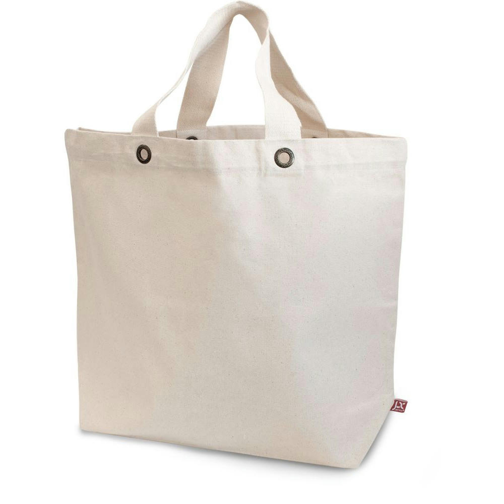 Big-Shopper aus OEKO-TEX® zertifizierter Baumwolle in strapazierfähiger Canvas-Qualität mit kurzen, gewebten Henkeln und Bodenfalte. Gegen Aufpreis auch mit langen Henkeln erhältlich.