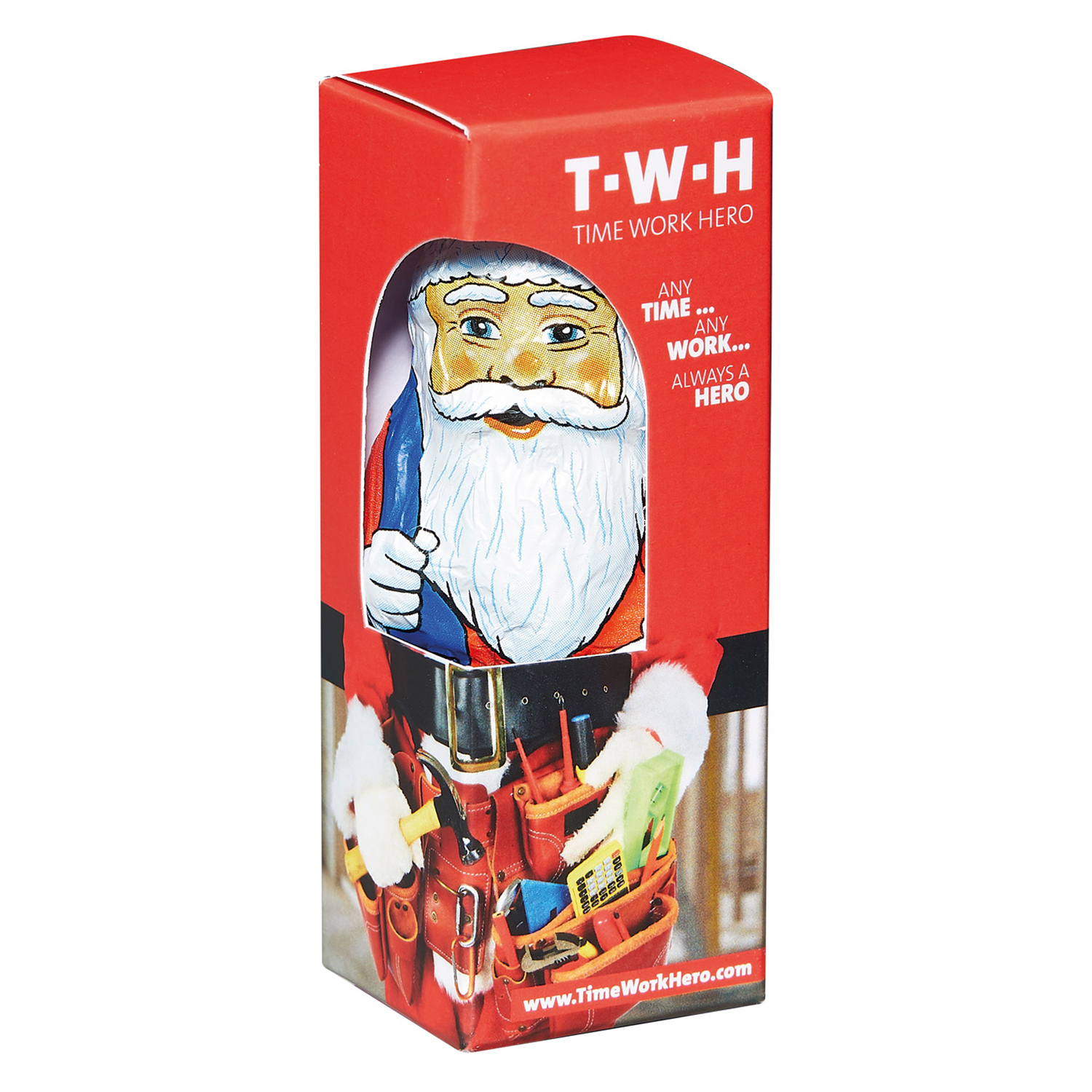 Hohlfigur, verpackt in Werbegeschenkbox mit Sichtfenster über Eck. Solange der Vorrat reicht. Geschmack: Edelvollmilchschokolade mit mindestens 32 % Kakao. Inhalt: 1 Stück á ca. 20 g. Maße: ca. 3,45 x 9,2 x 3,15 cm. Haltbarkeit: ca. 6 Monate.