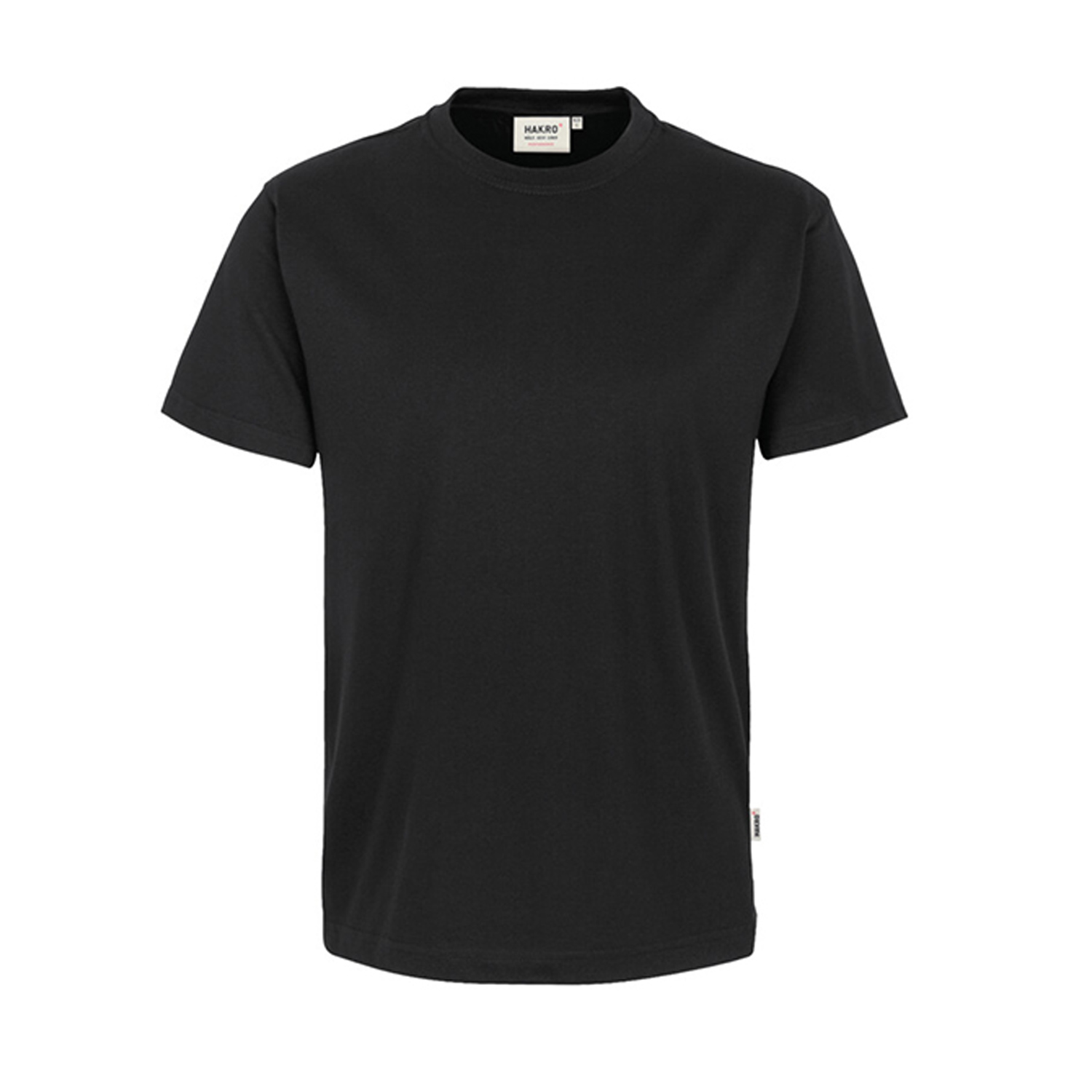 Besonders strapazierfähiges T-Shirt mit rundem Halsausschnitt, geripptem Halsbündchen und Nackenband. Leasingkoller zur einfachen Kennzeichnung in der gewerblichen Wäscherei und Aufhängebänder im Saum. Hergestellt aus weichem, besonders pflegeleichtem und funktionellem, mittelschweren Single-Jersey aus dem HAKRO Performance-Materialmix MIKRALINAR®. Gewebtes HAKRO Necklabel aus hochwertigem Kettsatin mit weichen, ultraschallgeschnittenen Bandkanten für höchsten Tragekomfort und gewebtes HAKRO Flaglabel an der linken Seitennaht.