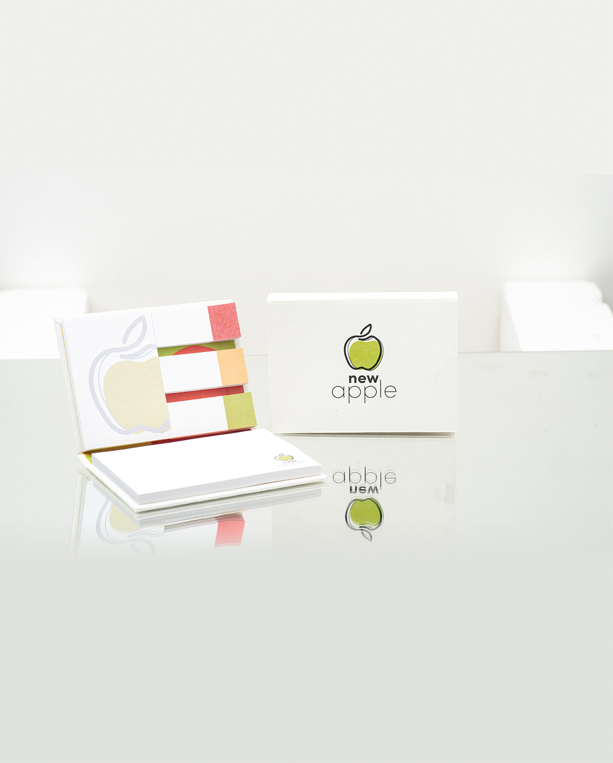 Hardcover aus Newapple-Apfelpapier aus biodynamischen Abfällen aus der Apfelverarbeitung. Drei Marker Blöcke in pastell oder brillant sowie zwei Haftnotizblöcke mit jeweils 50 Blatt aus Recyclingpapier. Inkl. 4-farbigem Druck auf dem Cover als auch auf den 2 Haftnotizblöcken.