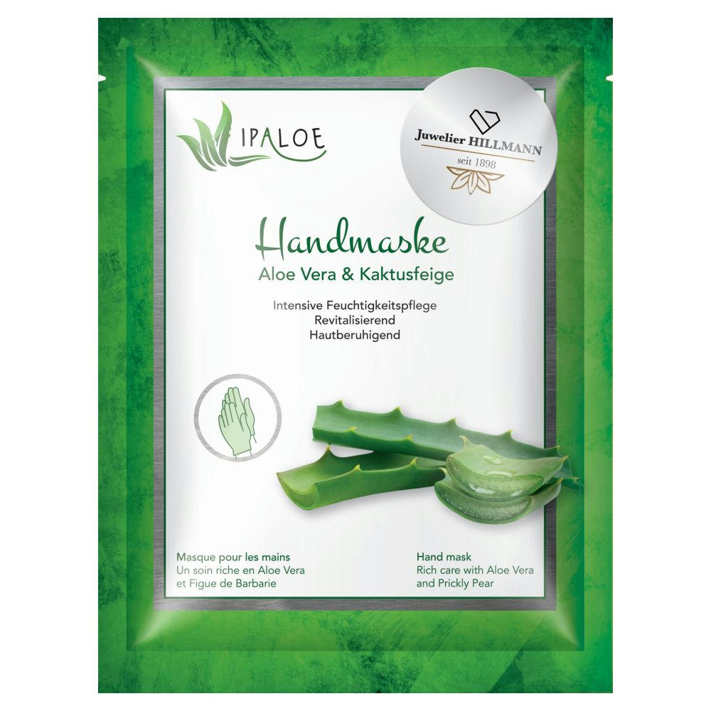 Intensivpflegende Handmaske mit Aloe Vera, Kaktusfeigen-Extrakt und Avocadoöl für trockene und strapazierte Hände. Intensive Feuchtigkeitspflege, hautberuhigend und revitalisierend für ein glattes und angenehmes Hautgefühl. Vegane Rezeptur. Made in Germany. • Ohne Alkohol • Ohne Mikroplastik • Nanofrei • Ohne Mineralöle • Ohne Silicone • Dermatologisch getestet Inhalt: 1 Handschuhpaar mit 28 ml Ab 10.020 Stück Sachet mit individuell bedruckter Folie auf Anfrage möglich.
