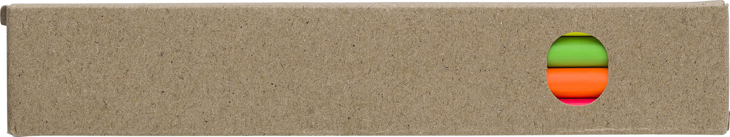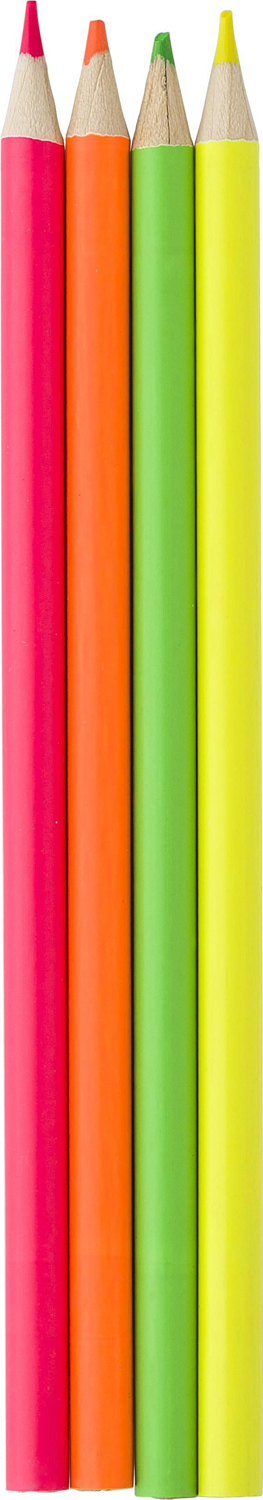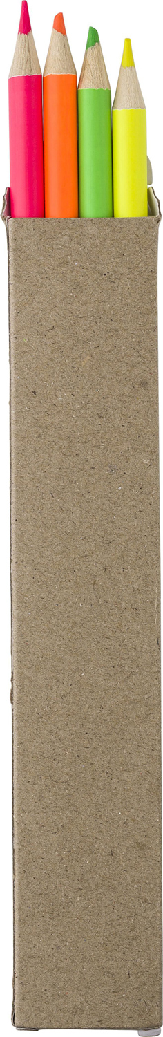 Buntstifte-Set mit 4 Farbstiften (gelb, orange, rosa und grün) in Kartonbox.