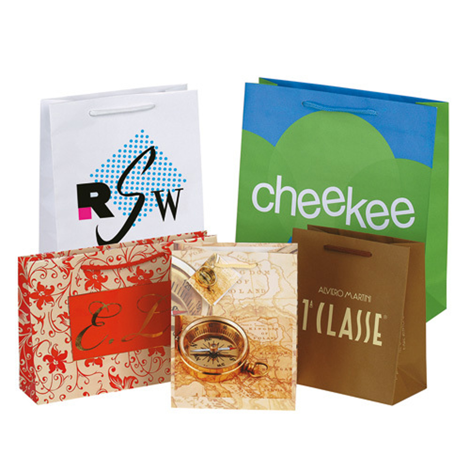 Taschen aus Kraftpapier in verschiedenen Farben, Größen und Papierstärken. Produktion komplett nach Kundenwünschen, auch mit zusätzlichen Accessoires wie zum Beispiel Kärtchen oder Schleifenband. Individuelle Bedruckung und Oberflächenkaschierung möglich. Art der Kartonverstärkung in Rand und Boden, Art der Henkel oder Kordeln sowie deren Farbe, Länge und Stärke frei wählbar. Ab 500 St., Fragen Sie uns nach den Möglichkeiten.