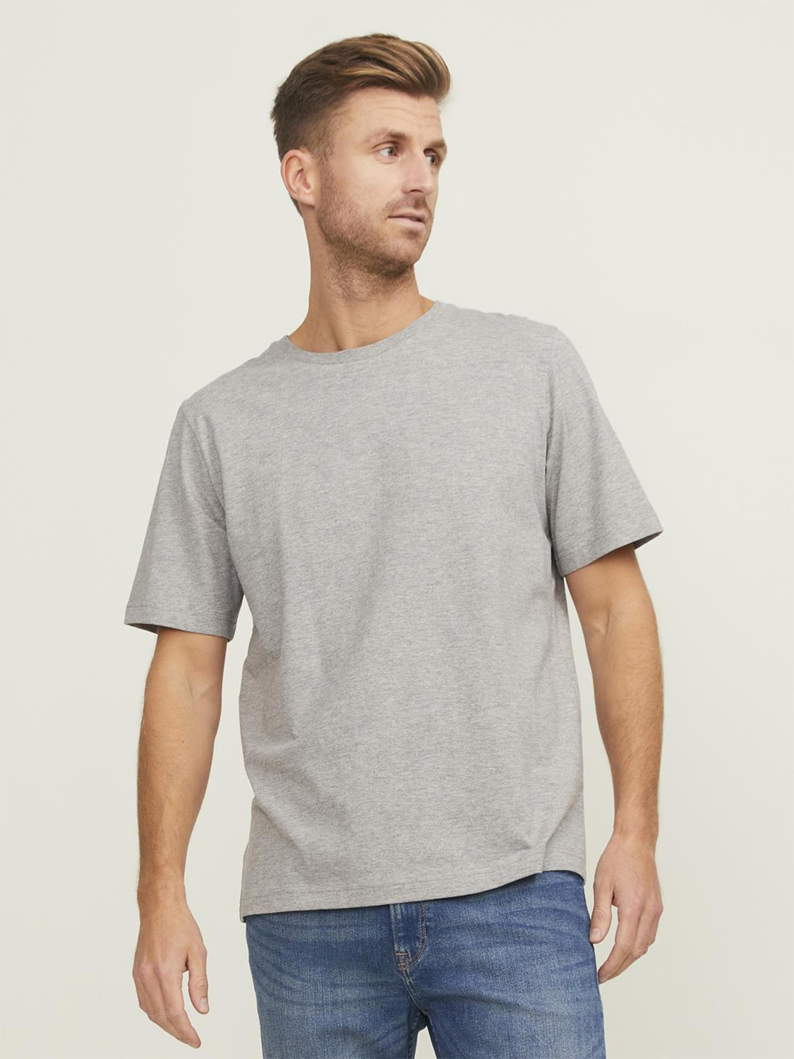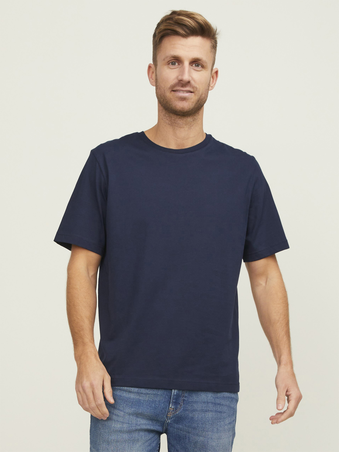 Klassischer Schnitt, Rundhalsausschnitt, Nackenband, Doppelnähte an Ärmel und Saum, weicher Griff.