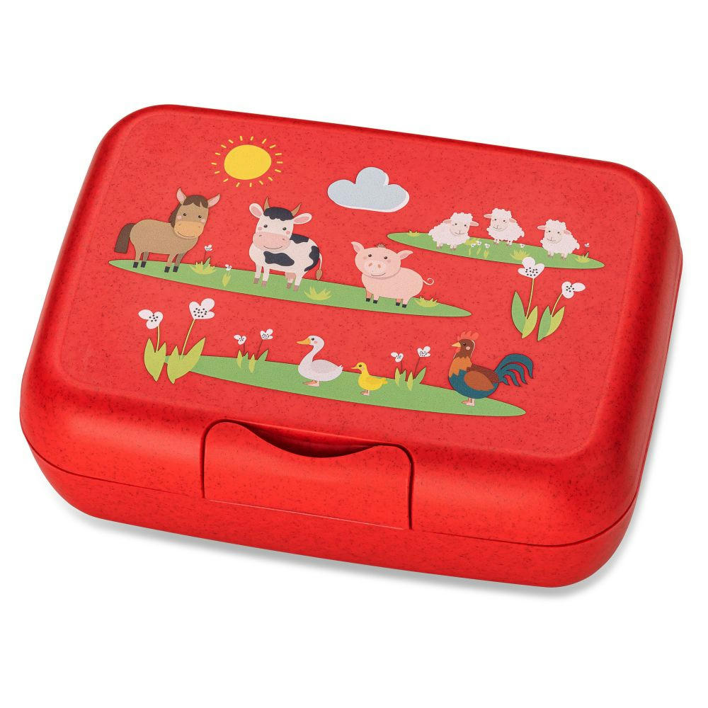 In der geräumigen Lunchbox CANDY L FARM sind Brote, Snacks, Obst und sogar belegte Brötchen frisch und appetitlich aufbewahrt. Der Clipverschluss ist in der Form versenkt, so dass sich die Dose beim Transport nicht versehentlich öffnen kann. Die abgerundete Form ist ein haptisches Vergnügen und vermeidet lästiges Anecken beim Transport in der Tasche, im Rucksack oder im Auto.