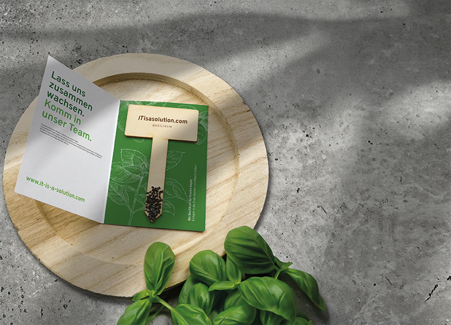 Klappkarte „Kräuterglück“ mit Logo-Pflanzstick