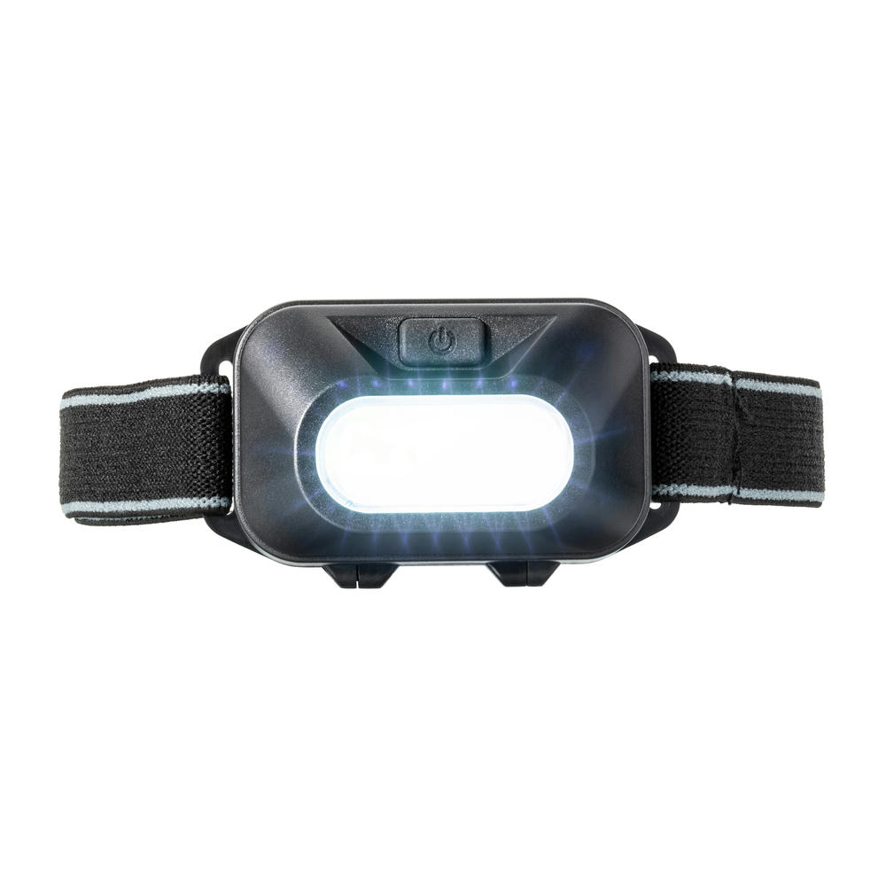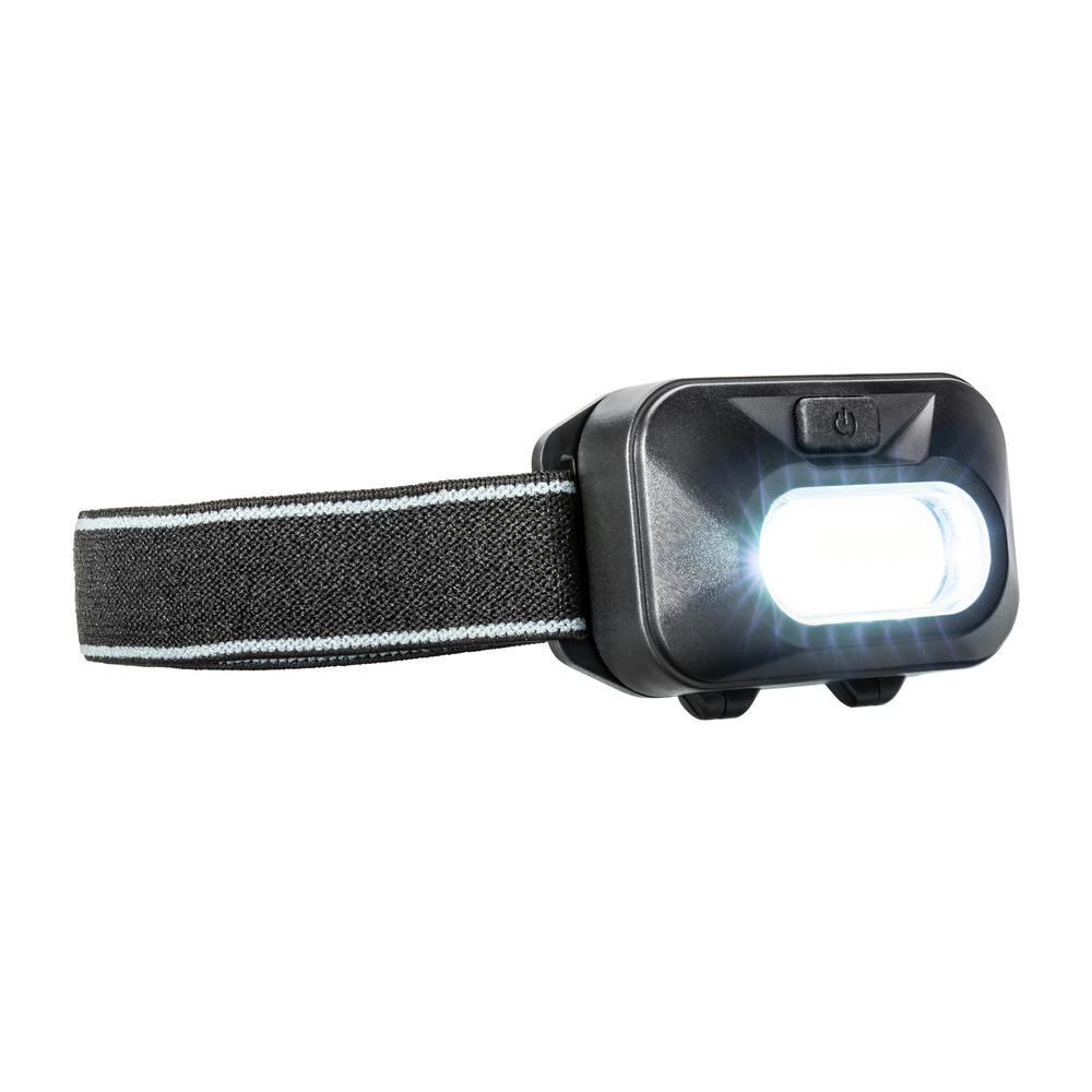 Praktische Kopflampe mit COB-Technologie (max. 90 Lumen, 2 Watt). Das sehr helle Licht lässt sich eine Stufe herunterdimmen und auf Blinken umstellen. Inkl. Batterie.