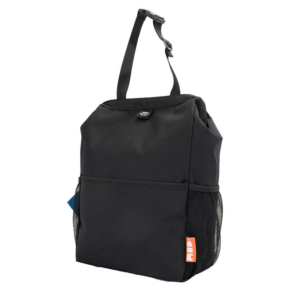 Eine multifunktionelle Tasche für unterwegs! Superpraktisch als Kühltasche im Auto, zum Befestigen an der Sitzlehne. Der Schnappverschluss macht es einfach, sie in den Park, an den Strand oder auf eine Party mitzunehmen. Die Innenseite ist wasserdicht und leicht zu reinigen.Der Stoff, das gewebte Band und das Netz werden aus insgesamt 10 recycelten Plastikflaschen hergestellt.