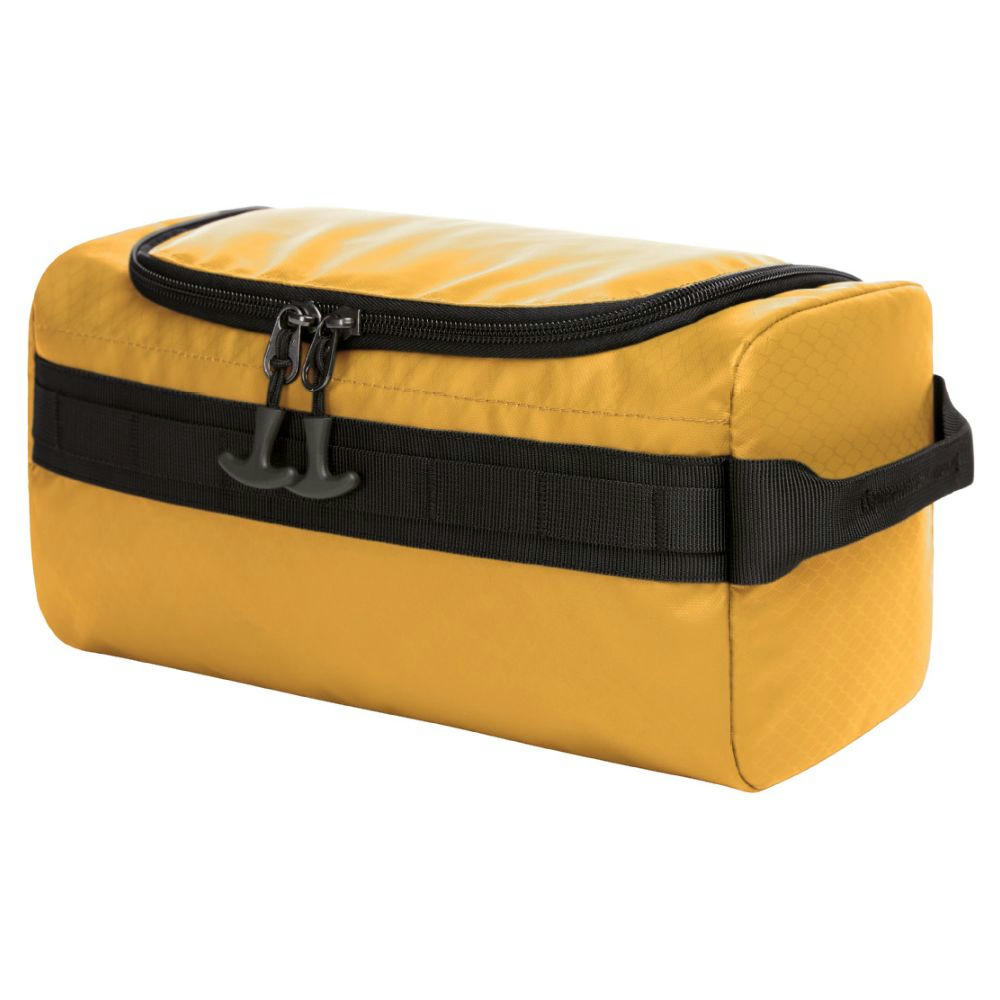 aufwändig gearbeitet und gepolstert; zum Aufstellen oder -hängen; Deckel-Reißverschlussfach; funktionales Schlaufenband innen und außen; zwei Netzeinsteckfächer sowie eine flache Reißverschlusstasche innen; Handgriff