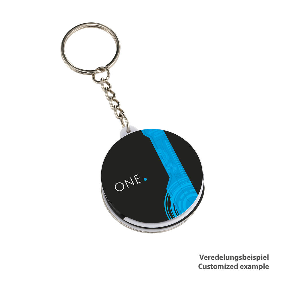 In diesem Schlüsselanhänger verbirgt sich ein Ladekabel, dass das Laden von USB auf Micro-USB oder für 5 Pin für Apple und USB -C erlaubt. Mit Flaschenöffner. Die Vorderseite kann komplett und vierfarbig bedruckt werden.
