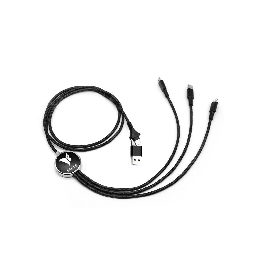 Multi-Ladekabel mit 5 Anschlüssen und LED-Logo.