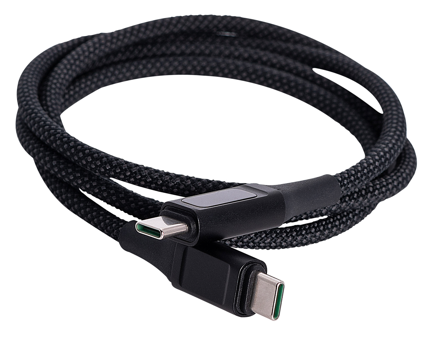 Ladekabel mit bis zu 100W Kapazität. Datenübertragung bis zu 480 mbps. Auf der Digitalanzeige kann abgelesen werden mit wieviel Watt das Gerät geladen wird. Stabile, gewobene Nylonummantelung. Länge 1 m
