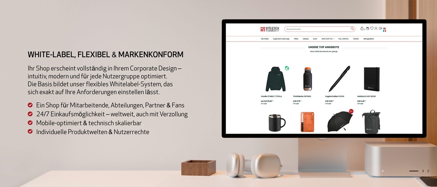Ob Onboarding, Messen, Events, Außendienst oder Handelspartner – Ihr Merch ist rund um die Uhr bestellbar und überall einsetzbar.