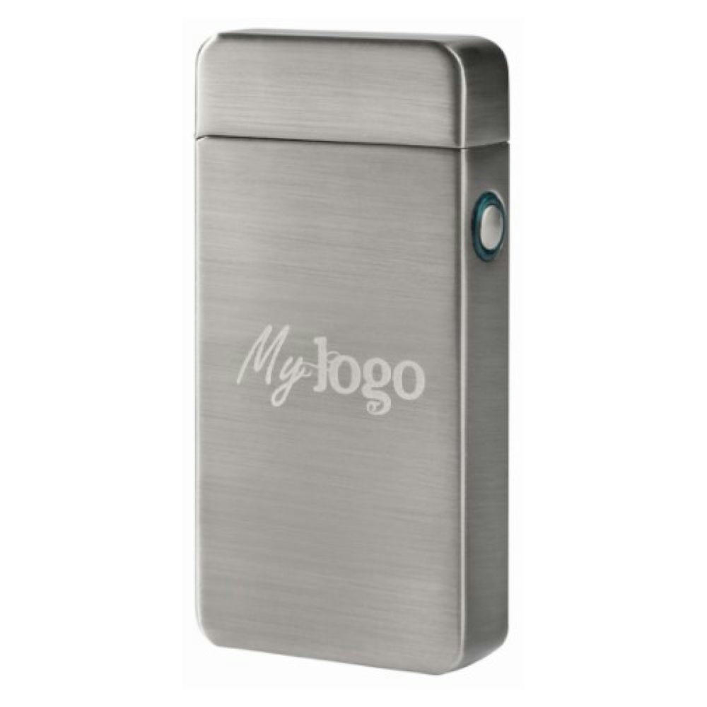 Matt-silber gebürstetes Feuerzeug mit Doppel(-Kreuz)-Lichtbogen, Klickdeckel und LED-beleuchtetem Aktivierungsknopf! Absolut windproof und schnellanzündend. 170mAh Lithium- Ionen-Akku, Security Chip, Ladezeit ca. 1h, für 40-80 Zündungen, Sicherheitsabschaltung nach 10 Sek. USBKabel. Im Designkarton.