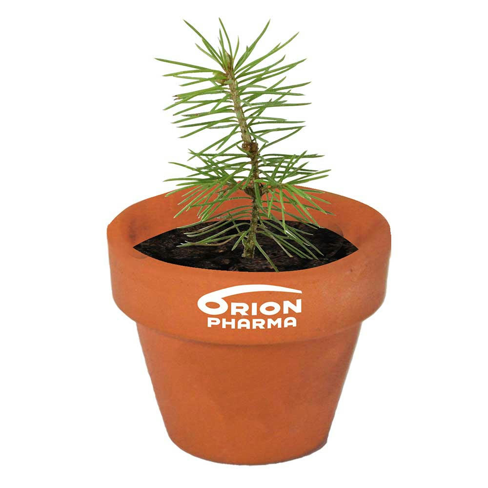 Das Terracotta Töpfchen wird mit Fichtensamen und einer Substrattablette als Erde geliefert. Inkl. Logo-Druck auf dem Topf und individueller Gestaltung auf der Verpackung.
