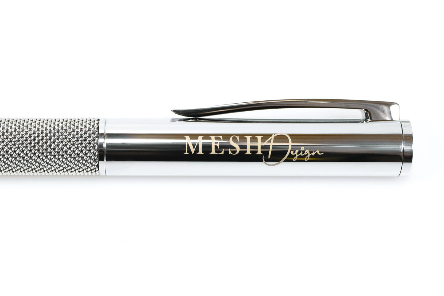 Metall-Drehkugelschreiber glänzend lackiert mit Softdrehmechanik und gefedertem Metallclip. Schaft mit integriertem Meshband.