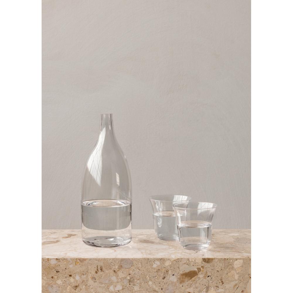 Die Kopenhagener Architekten Mentze Ottenstein ließen sich bei der Gestaltung ihrer Strandgade-Serie für MENU von ihrem Viertel inspirieren, benannt nach der historischen Straße, in der sie wohnen. Die Strandgade-Karaffe aus mundgeblasenem Glas hat eine asymmetrische Silhouette, die gut in der Hand liegt und das Ausgießen von Flüssigkeiten erleichtert. Sie wurde für das Servieren von Kaltgetränken entwickelt und vereint Funktion und Nostalgie. Die kleinere Flasche ist aus klarem Glas geformt, während die größere einen dunkleren Farbton aufweist. Jedes einzelne Design variiert in Größe und Form, da jedes Stück handgefertigt ist.