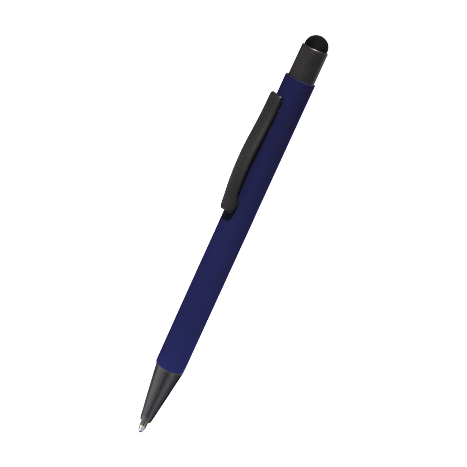 Touch-Pen, Soft-Touch Schaft und Metallclip . Metall-Großraummine blauschreibend
