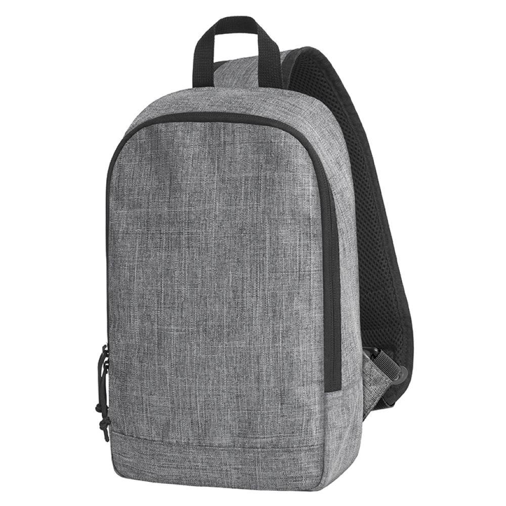 moderner Monostrap-Rucksack; Hauptfach mit 2-Wege-Reißverschluss; flaches Einsteckfach innen; rückseitiges Reißverschlussfach; gepolsterter, längenverstellbarer und beidseitig tragbarer Schultergurt; Trageschlaufe