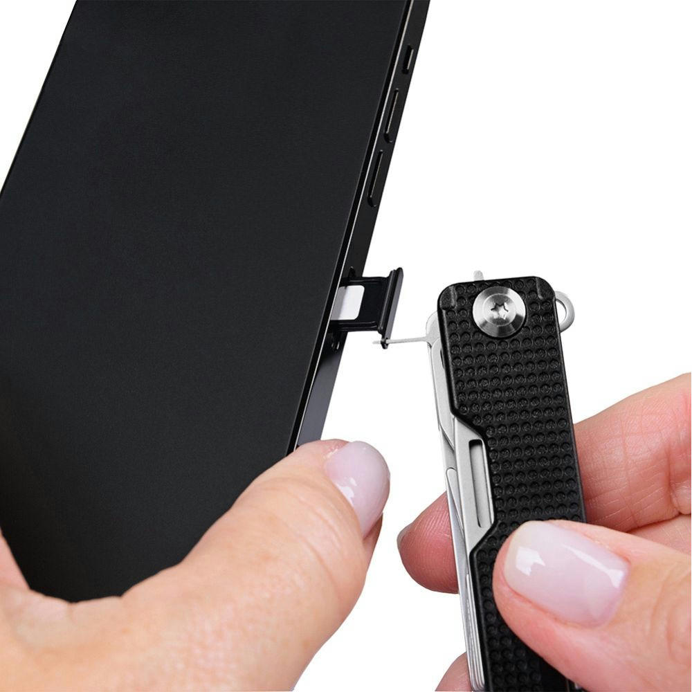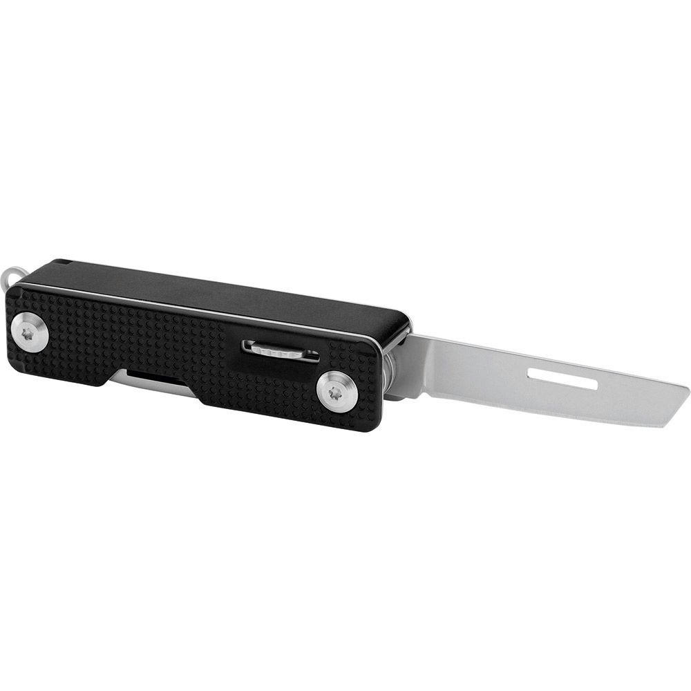Multifunktions-Werkzeug mit 12 Funktionen. Für Rechts- und Linkshänder geeignet. Funktionen: Taschenmesser (Klingenlänge 53 mm), Schere, Metallfeile, Schlitzschraubendreher, Phillips-Schraubendreher, Dosenöffner, Flaschenöffner, Hakenklingen-Cutter, Smart