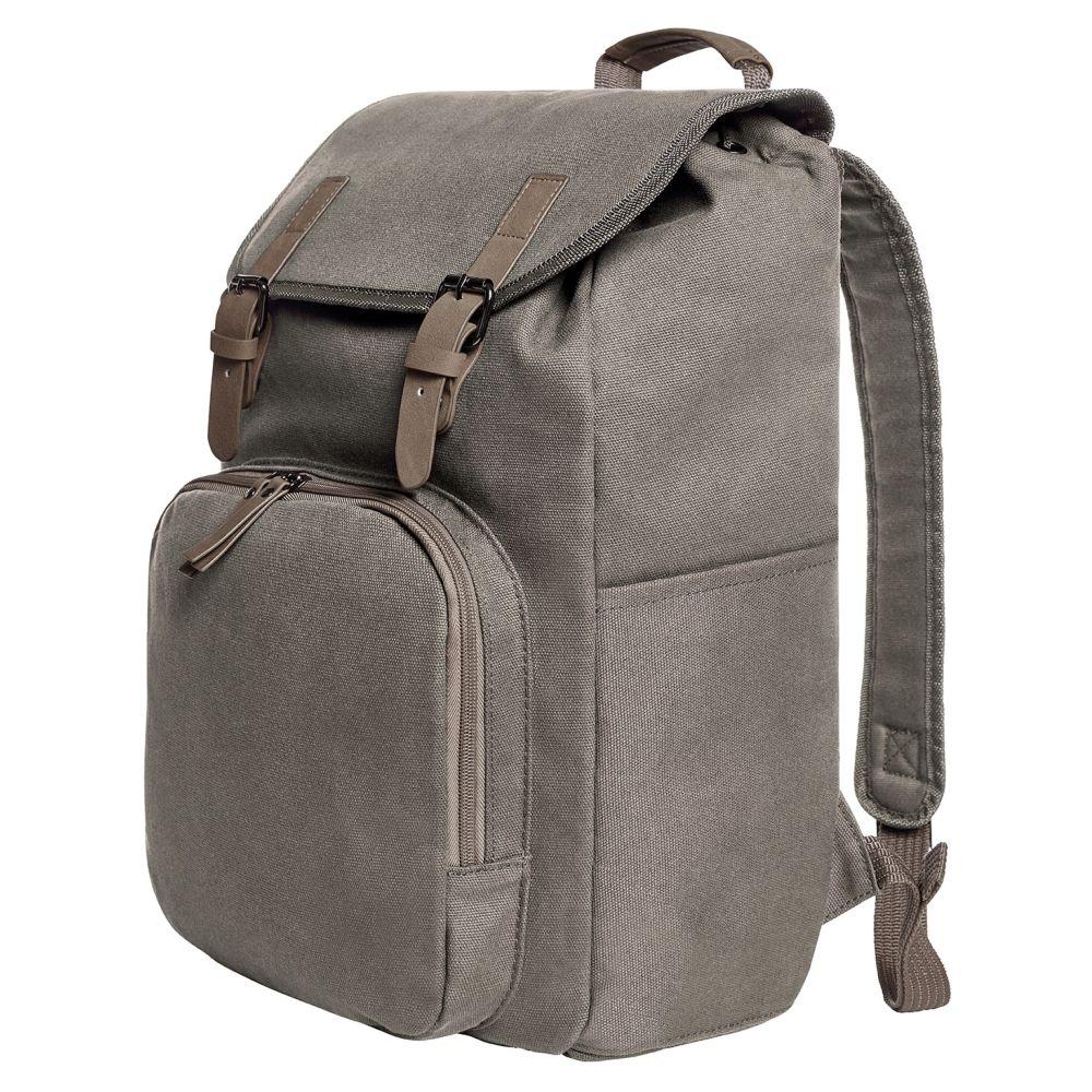 Überschlag mit verstellbaren Zierschnallen und Magnetverschluss; großes Hauptfach mit Kordelzugverschluss; gepolstertes Notebookfach; Vortasche mit 2-Wege-Reißverschluss; seitlich zwei flache Einsteckfächer; Handgriff mit Griffmanschette; gepolsterte, längenverstellbare Schultergurte; wertige Metall-Accessoires und PU-Velourskunstleder-Accessoires