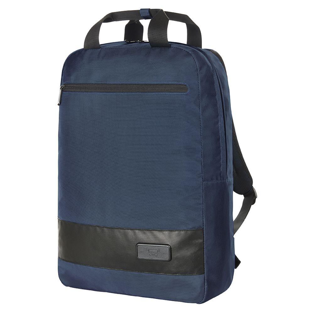 moderner Rucksack mit Kontraststreifen; HFL® Träger für Ihr Logo; großes Hauptfach mit 2-Wege-Reißverschluss; gepolstertes Notebookfach; Einsteckfächer; Stiftschlaufen; große Reißverschluss-Vortasche, gepolsterter Rücken und Schultergurte; Handgriffe mit Druckknopfmanschette