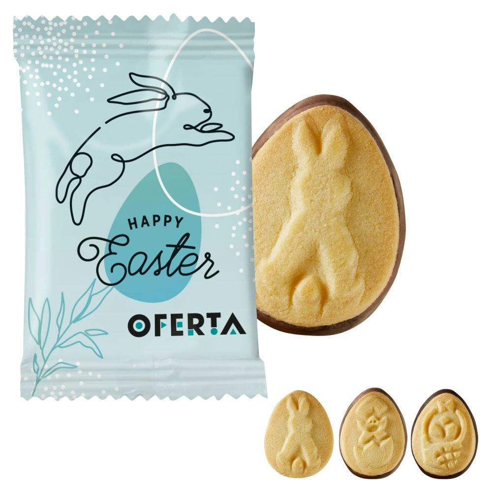Leckere Butterkekse mit lustigen Ostermotiven verziert. Butterkekse: in Klassik ohne Schokoboden, mit Vollmilchschokoladen- und mit dunklem Schokoladenboden, bunt gemischt. Einzeln verpackt in glänzend- oder matt-kaschiertem, weißen Flowpack. Bruch einzelner Kekse möglich. Haltbarkeit: ca. 4 Monate bei sachgerechter Lagerung. Preis inkl. 1-5c Druck.